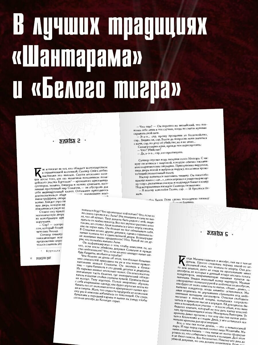 Это первая книга индийского автора. Все сравнивала с индийскими фильмами. Но тут все по другому. Книга без прикрас, тут все жестко, без песен и танцев. Показана видимо истинная индийская реальность с ее нищетой, грязью. Показаны быт, традиции, продажная полиция. В книги женщина как товар. Это драма больше, чем детектив. Главные героини вызывают сочувствие. Читается под настроение.