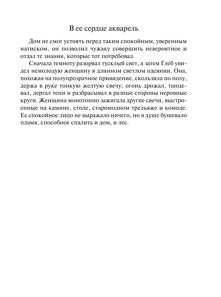 Книга читалась легко и смогла её закончить буквально за один вечер. Очень не хотелось отрываться от судьбы героев, она цепляет с самых первых абзацев и не отпускает. Олеся — образец идеальной книжной героини (для меня). Сильная, решительная, но в то же время добрая, сострадательная, готовая открыть свое сердце и любить со всей полнотой души. Ей хотелось сопереживать, верить.