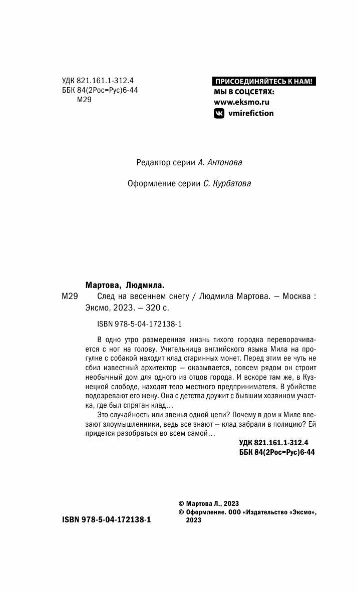 Книга: След на весеннем снегу (Людмила Мартова); Эксмо, Редакция 1, 2022