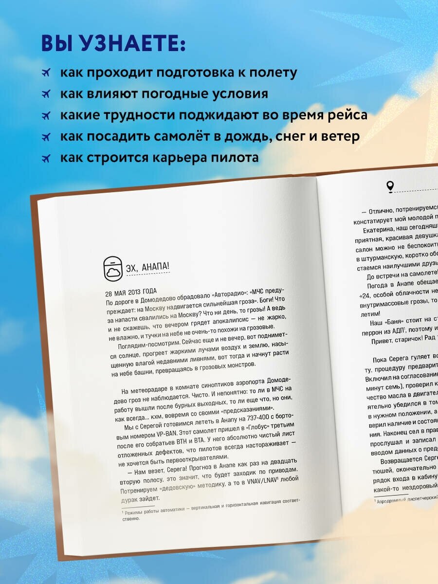 Я была приятно удивлена первой книгой! Автору удалось передать всё тонкости его профессии так, чтобы невозможно было оторваться, поэтому незамедлительно приобрела вторую. Могу сказать, что осталась в восторге в такой же степени. Увлекательный и познавательный рассказ о профессии пилота и мне, как человеку, который толком и не разбирается во всех аспектах этого дела, было очень интересно читать!
