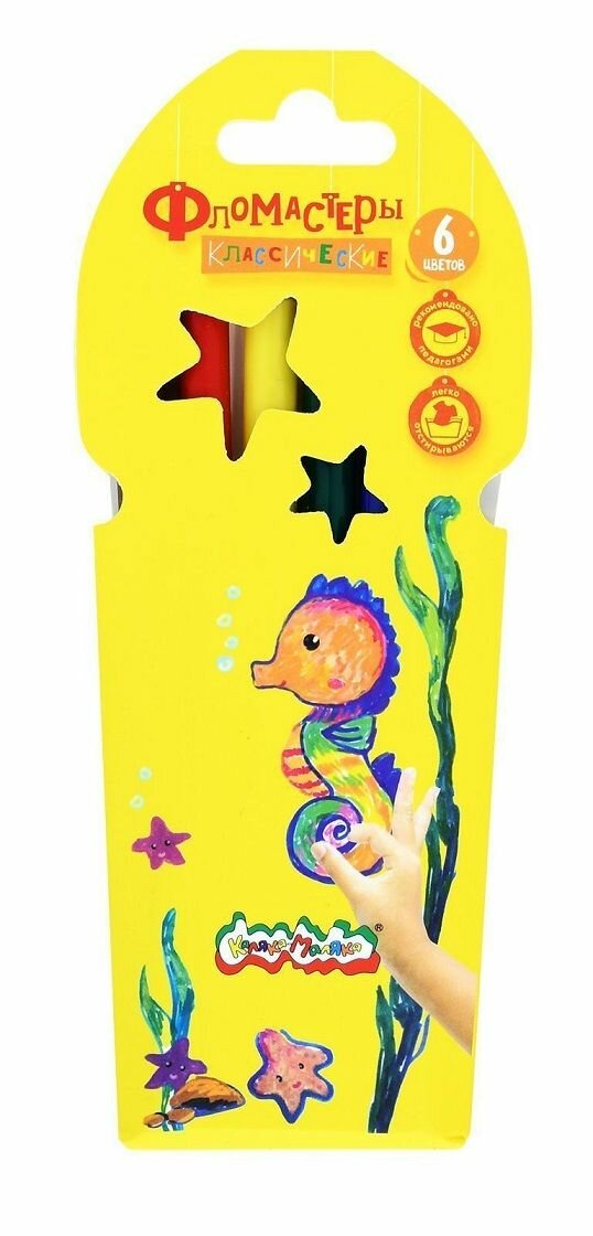 Фломастеры Каляка-Маляка одни из самых ярких, долговечных и безопасных фломастеров на рынке. Разработаны для детей в возрасте от 3 лет. Выпускаются в картонной упаковке в виде конверта с европодвесом. Толщина фломастера 9 мм. Диаметр пишущего наконечника 2 мм. В наборе 6 цветов. Фломастеры Каляка-Маляка соответствуют самым высоким мировым стандартам качества и безопасностиОбладают яркими, сочными цветами. Полипропиленовый корпус обладает повышенной устойчивостью к излому, не образует острых краев при повреждении. Безопасный вентилируемый колпачок обеспечит свободное прохождение воздуха при случайном попадании в дыхательные пути. Прочный пишущий узел не деформируется и не продавливается. Чернила на водной основе. В комплекте: 6 уп.