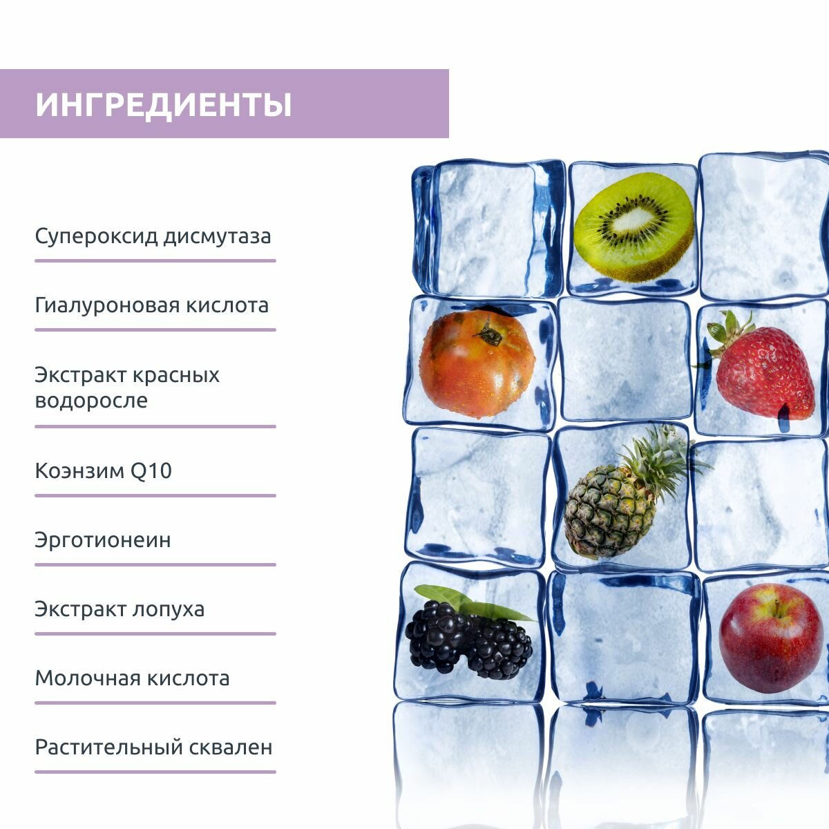 | Активные компоненты | гиалуроновая кислота, сквалан, морские водоросли, молочная кислота, коэнзим Q10, масло дерева ши |