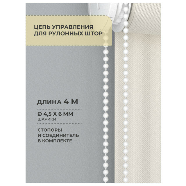 Внимание! Перед покупкой измерьте диаметр шариков на Вашей цепочке. Цепочка подходит для рулонных штор формата Мини (диаметр шарика 4,5х6 мм).