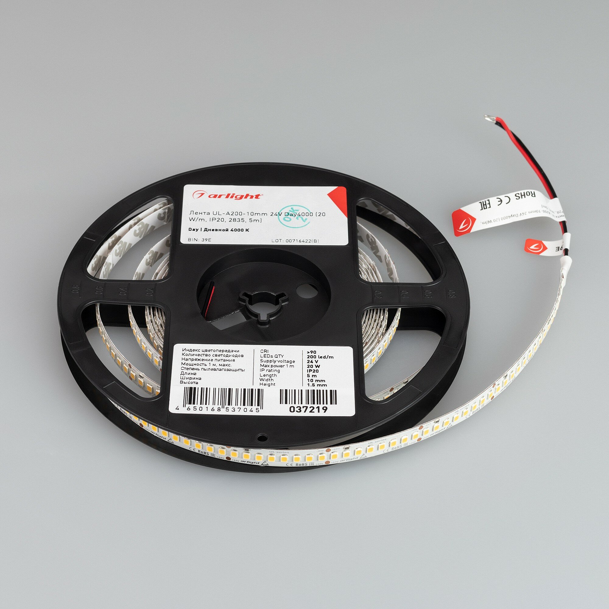 Светодиодная лента 24V 4000K 20 Вт/м 5м Arlight 037219 UL-A200-10mm 24V Day4000