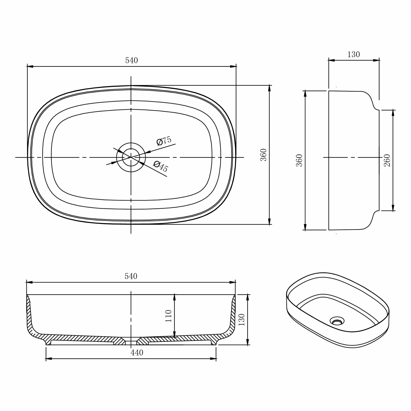 Раковина Conca 540 от MonteBianco - стильное и функциональное решение для вашей ванной комнаты.Раковина выполнена из искусственного камня, что обеспечивает ей долговечность и устойчивость к воздействию влаги. Матовая, бархатистая поверхность придает раковине элегантный и современный вид.Раковина Conca 540 имеет круглую форму и белый цвет, что позволяет ей гармонично вписаться в любой интерьер ванной комнаты. Отсутствие размеченных отверстий под смеситель делает ее еще более гибкой в плане размещения.Монтаж раковины осуществляется накладным способом, что позволяет легко и быстро установить ее на столешницу или стену.Диаметр сливного отверстия составляет 45.0 мм, а глубина раковины - 36.0 мм. Это обеспечивает комфортное использование и позволяет эффективно использовать пространство ванной комнаты.Выбирая раковину Conca 540 от MonteBianco, вы получаете стильное, функциональное и надежное решение для вашей ванной комнаты.