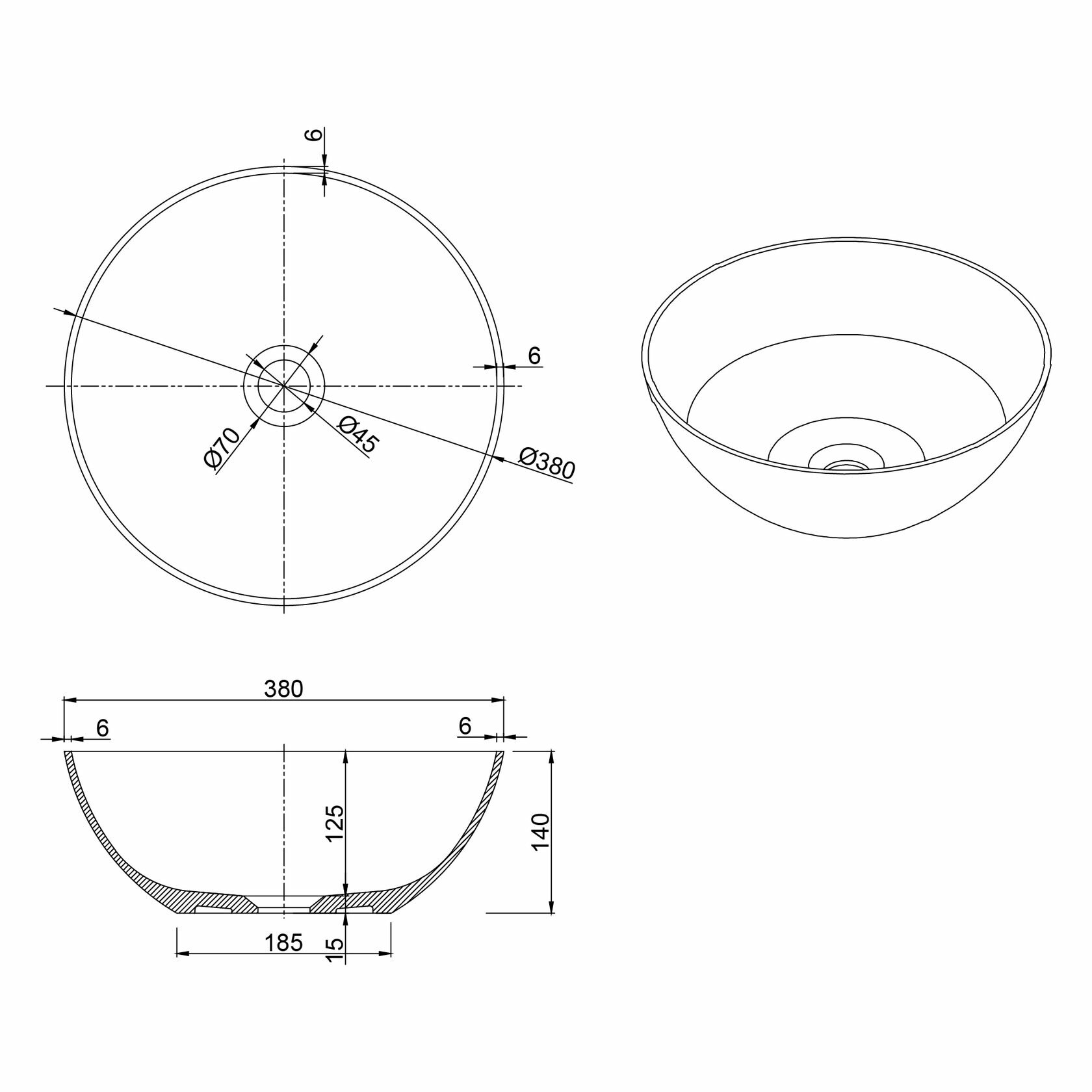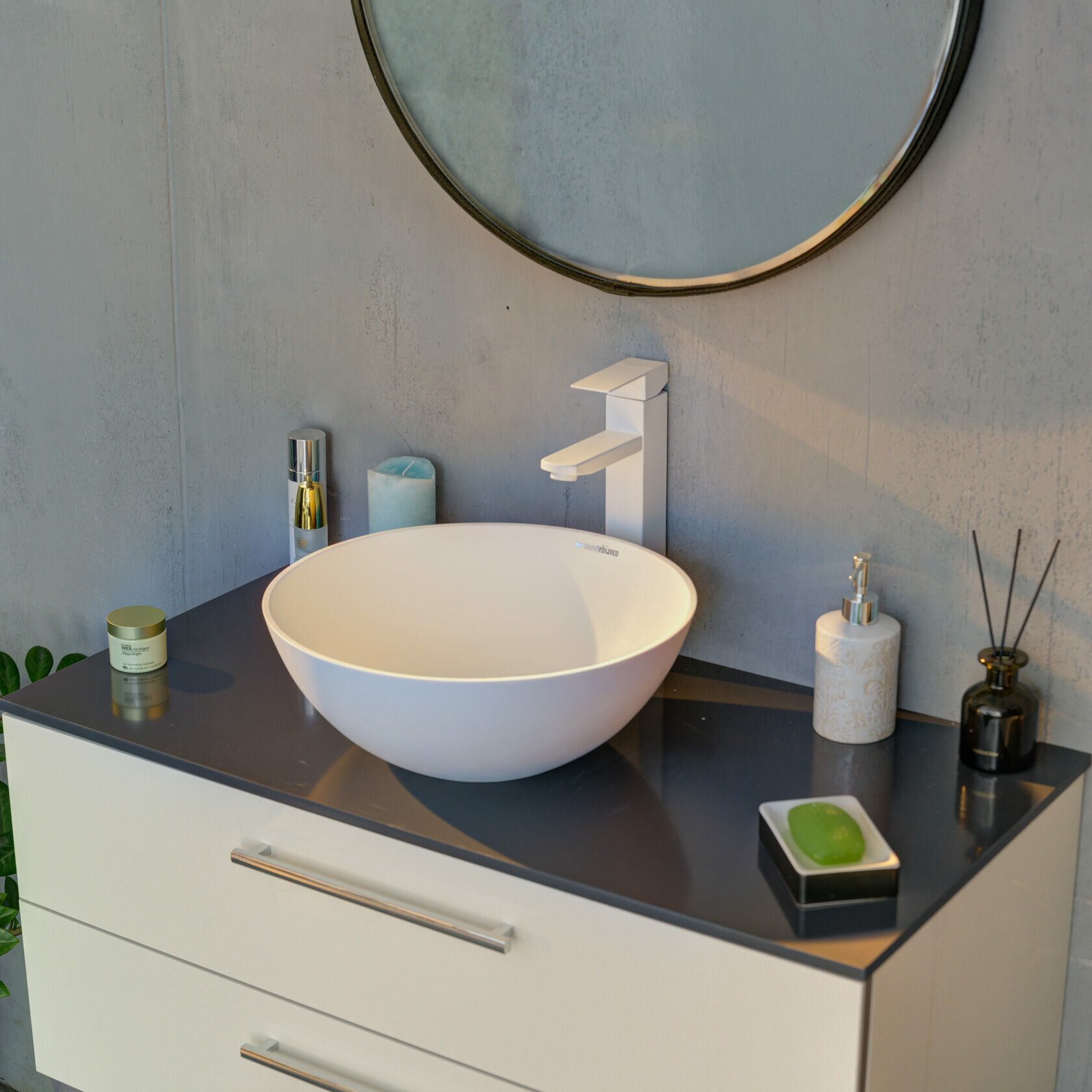 Круглая форма раковины Montebianco Nemi оптимальных размеров: шириной 38 см, глубиной 38 см, высотой 14 см, способствует комфорту использования и монтажа. Современный стиль, в котором выполнена раковина Montebianco 20141 передается во всех элементах данной модели. Материалом, из которого произведена раковина 20141 является искусственный камень, данный материал отличается максимально гладкой поверхностью, и абсолютной гигиениченостью.