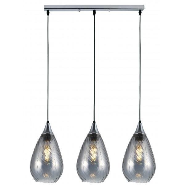 Rivoli Lily (арт. 9122-203) - подвесной светильник с хромированным металлическим основанием и 3 фигурными плафонами из дымчатого стекла. Светильники потолочные подвесные Lily созданы итальянским брендом Rivoli в популярном стиле модерн. Стекло плафонов закалено. Такие подвесные светильники станут превосходным решением для размещения над столом или барной стойкой. Высоту тросов каждого из трех плафонов можно отрегулировать при монтаже. Если вы ищете подвесные светильники для кухни или подвесные светильники в прихожую, стоит заказать эту оригинальную стильную модель. Lily Rivoli - подвесные светильники на надежных тросах. Рекомендуемые источники света - Е27 мощностью 40 Вт. Один светильник подвесной Lily хорошо подсвечивает площадь 9 м2. Дымчатые стеклянные плафоны в форме капель смягчают яркость светового потока, делая освещение комфортным для глаз.