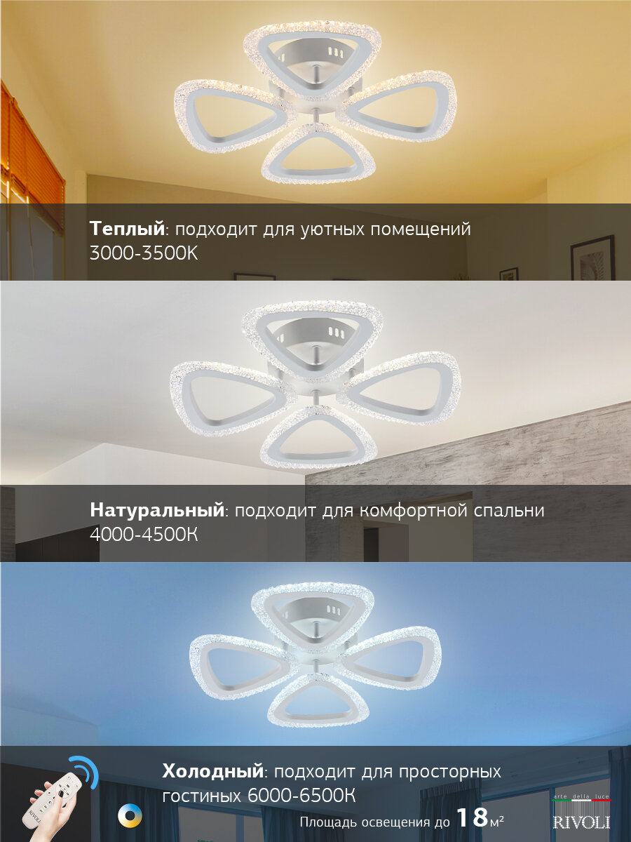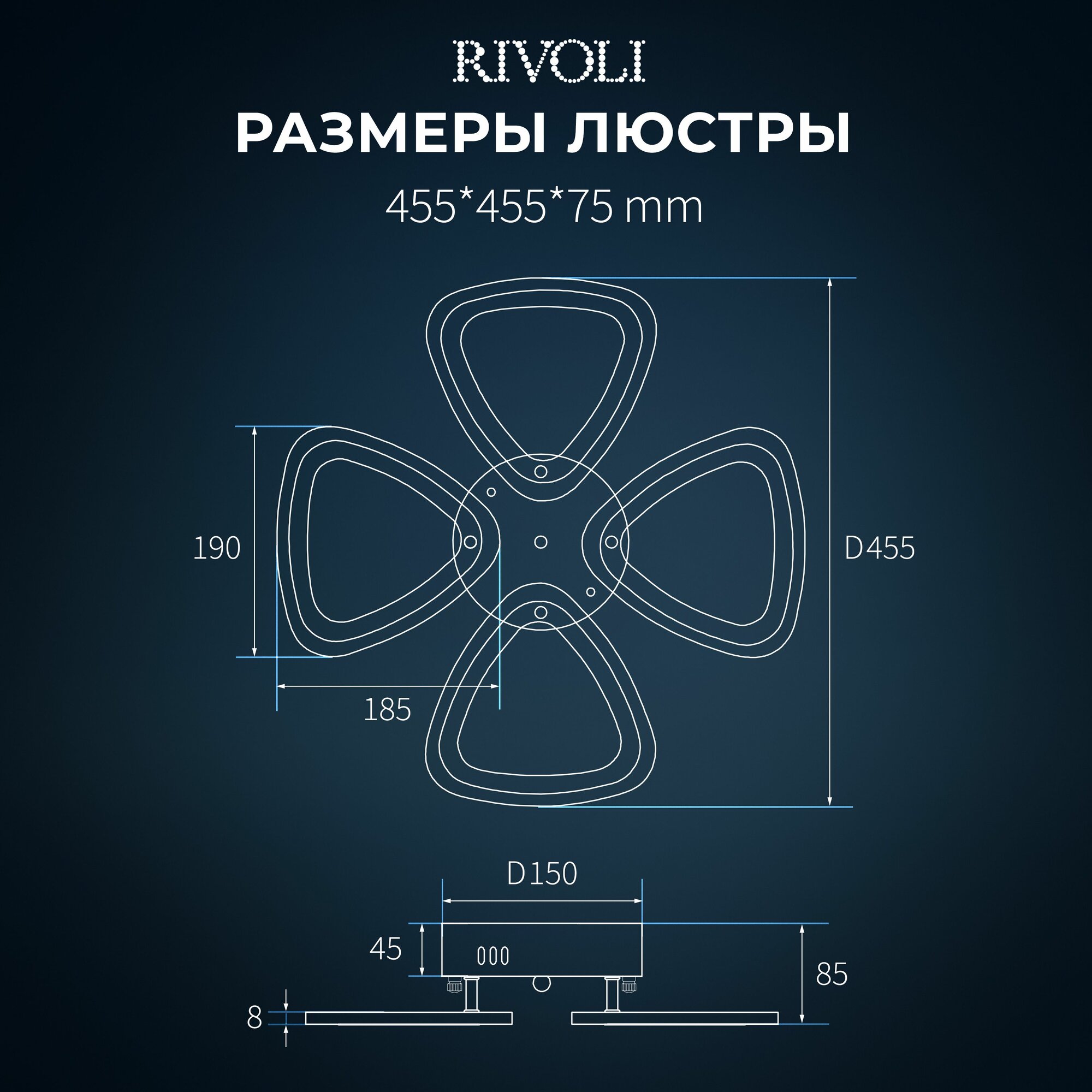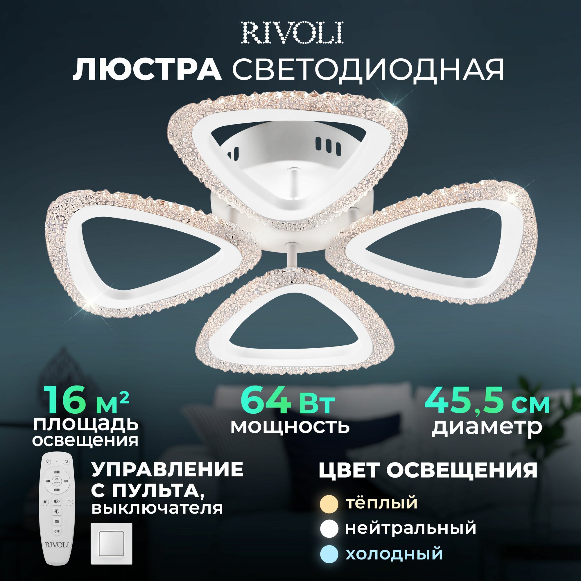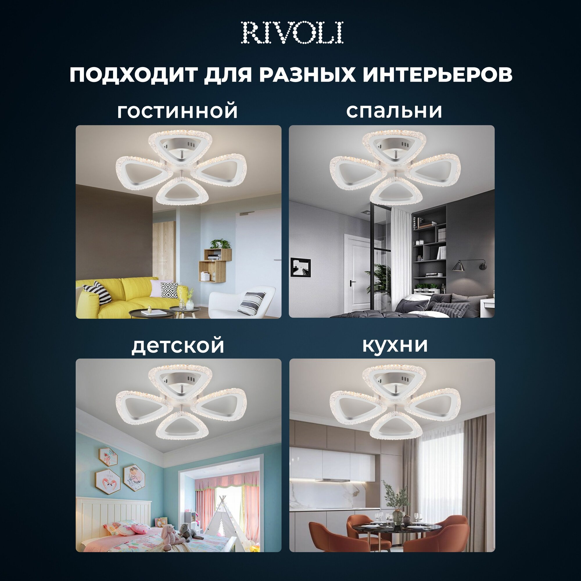 Люстра потолочная светодиодная Rivoli Alicia 6093-105 - это современное и стильное решение для освещения вашего дома. Она выполнена в модерном дизайне и оснащена пультом дистанционного управления, что позволяет легко и быстро регулировать яркость и цветовую температуру света.Особенностью данной модели является возможность выбора цветовой температуры и регулировки яркости света. Это позволяет создать комфортную атмосферу для отдыха, работы или развлечений.Люстра Rivoli Alicia оснащена одним светодиодным источником света, который обеспечивает яркое и равномерное освещение площади до 18 м².Люстра имеет четыре треугольных LED-плафона, украшенных декоративными акриловыми кристаллами. Это придает ей элегантный и современный вид.Крепление люстры осуществляется на планку, что обеспечивает надежность и устойчивость конструкции.Люстра имеет степень пылевлагозащиты IP20, что делает ее безопасной для использования в жилых помещениях.Управление люстрой осуществляется с помощью пульта дистанционного управления или механического выключателя.Выбирая люстру потолочную светодиодную Rivoli Alicia 6093-105, вы получаете стильное, функциональное и удобное освещение для вашего дома.