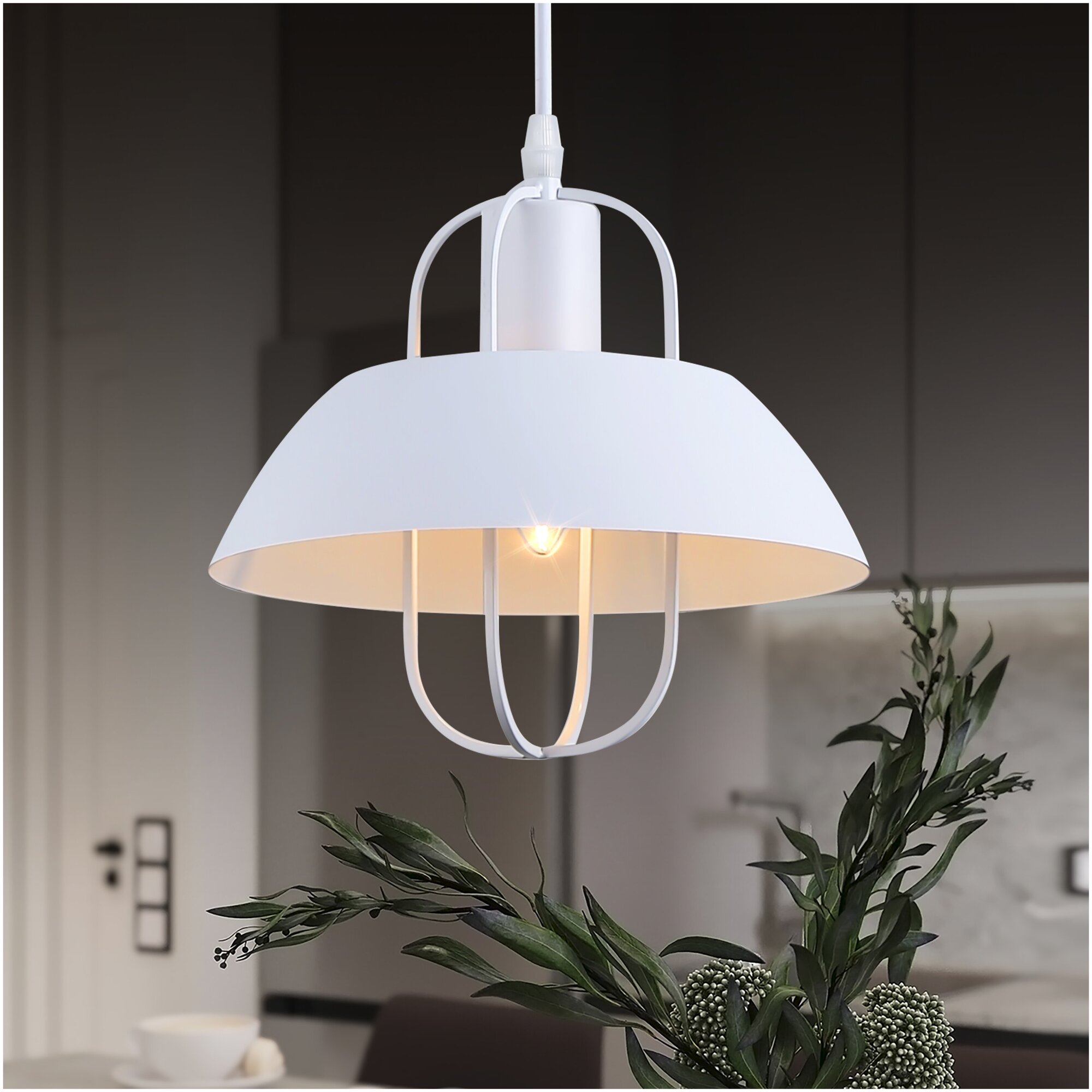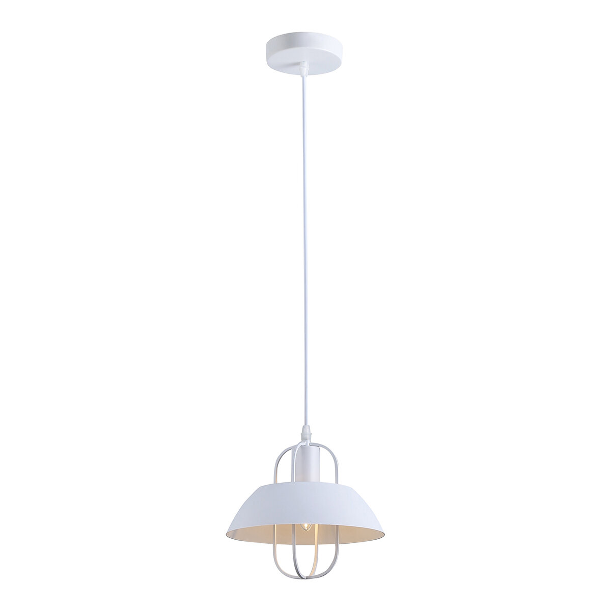 Подвесной светильник Rivoli Amelia (арт. 5136-201) с белым плафоном-козырьком на тросе. При монтаже светильника можно выбрать нужную высоту подвеса. Плафон подвесного светильника-люстры Amelia изготовлен из легкого и прочного металла, источник света обособлен стильным металлическим каркасом. Благодаря гальванизации в базовый белый цвет светильники потолочные подвесные Amelia Rivoli выглядят невесомо, аккуратно и являются универсальным решением для любого интерьера. Итальянские дизайнеры создали эти подвесные светильники на тросах в стиле лофт-кантри, популярном во всем мире за счет своей практичности, ясности и естественности. Подвесные светильники над столом Amelia Rivoli удачно заказать для пространств в стиле ретро, минимализм, индастриал, скандинавский. Эти подвесные светильники для кухни сочетают лаконичность современного лофт-светильника и винтажную трогательность ретрофонаря.