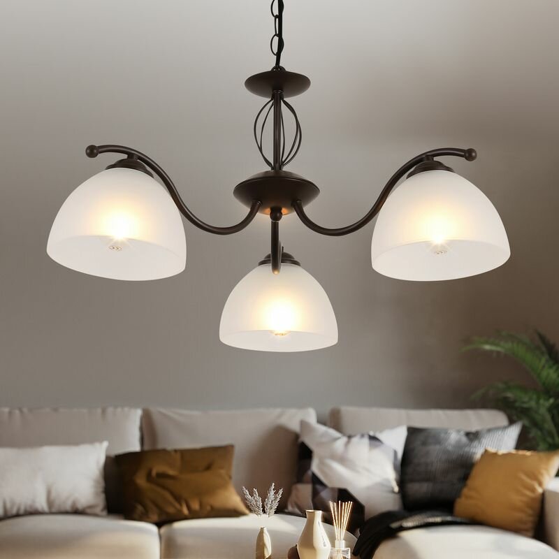 Данная люстра с 3 плафонами хороша на кухню, в кабинет. Высота подвеса регулируется. nbsp;/