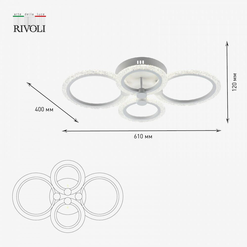Rivoli Blanca (арт. 6094-105) светильник светодиодный потолочный с пультом дистанционного управления. LED-люстра оснащена регулировкой яркости и цветовой температуры. Очень удобно управлять LED-светильником на потолке с расстояния. Прекрасный вариант люстры в спальню или люстры в гостиную. Есть возможность управления со смартфона. /Размер люстры на потолок Blanca - 610*400*120 мм. Дизайн создан в Италии. Корпус изготовлен из легкого прочного металла со стойким окрашиванием универсального белого цвета. Купить LED-светильник потолочный Blanca от итальянского бренда Rivoli значит преобразить современную квартиру, сделать дом функциональным. /Применена светодиодная технология последнего поколения. Световой поток - 3375 Лм. /LED-люстра на потолок Rivoli Blanca позволяет выбирать комфортную температуру освещения. Теплый свет для отдыха, холодный для работы или учебы. Нейтральный белый свет этой современной люстры приближен к естественному дневному. /