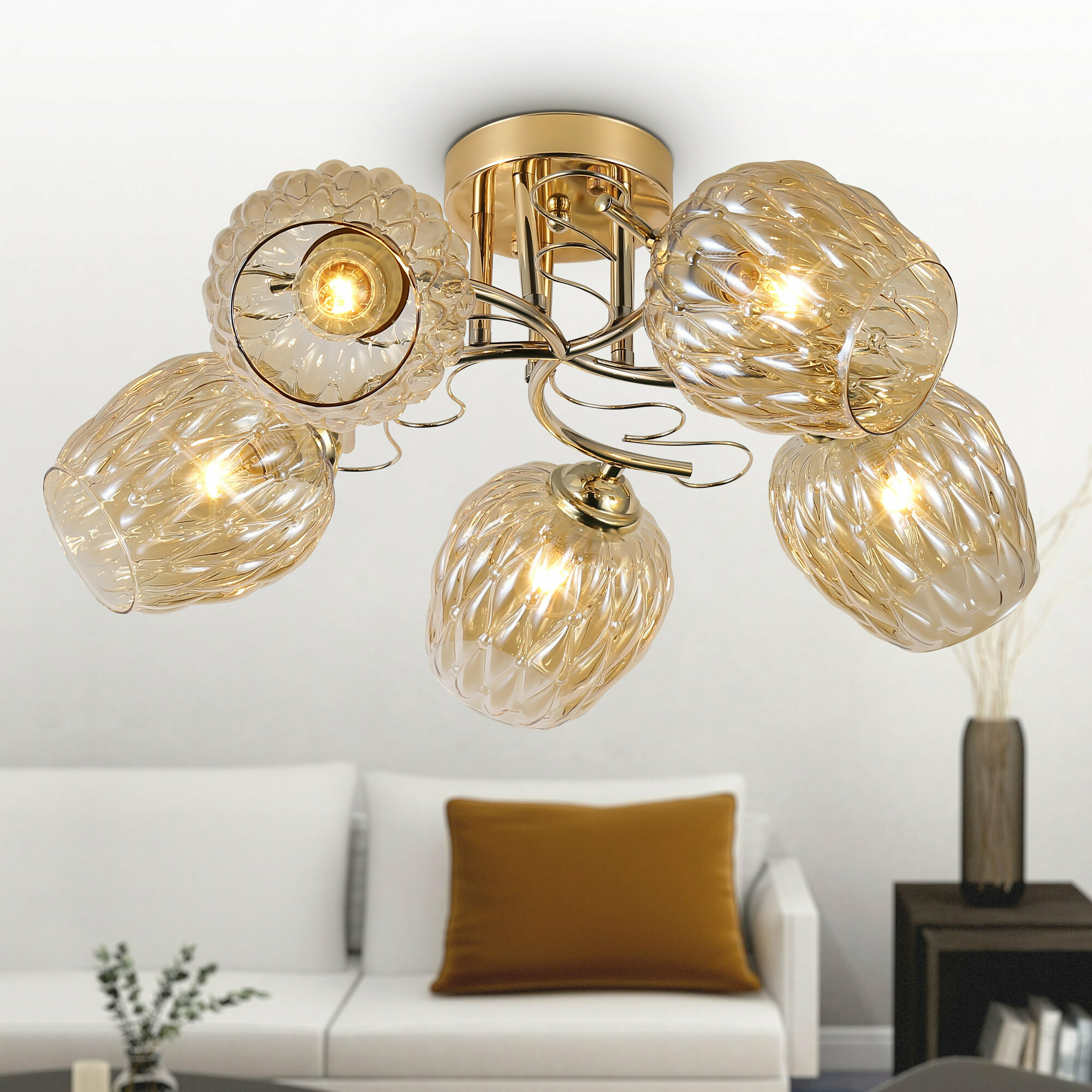 Дизайнерские люстры на потолок Alexia Rivoli выполнены в золотом цвете. Надежный металлический корпус - залог долговечности люстры. Плафоны люстры из дизайнерского рельефного стекла с объемным узором. Мягкая золотистая тонировка стеклянных плафонов люстры Alexia создает комфортный для глаз свет. Корпус люстры на потолок Rivoli Alexia украшен тонкими декоративными веточками из металла золотого цвета. nbsp;/