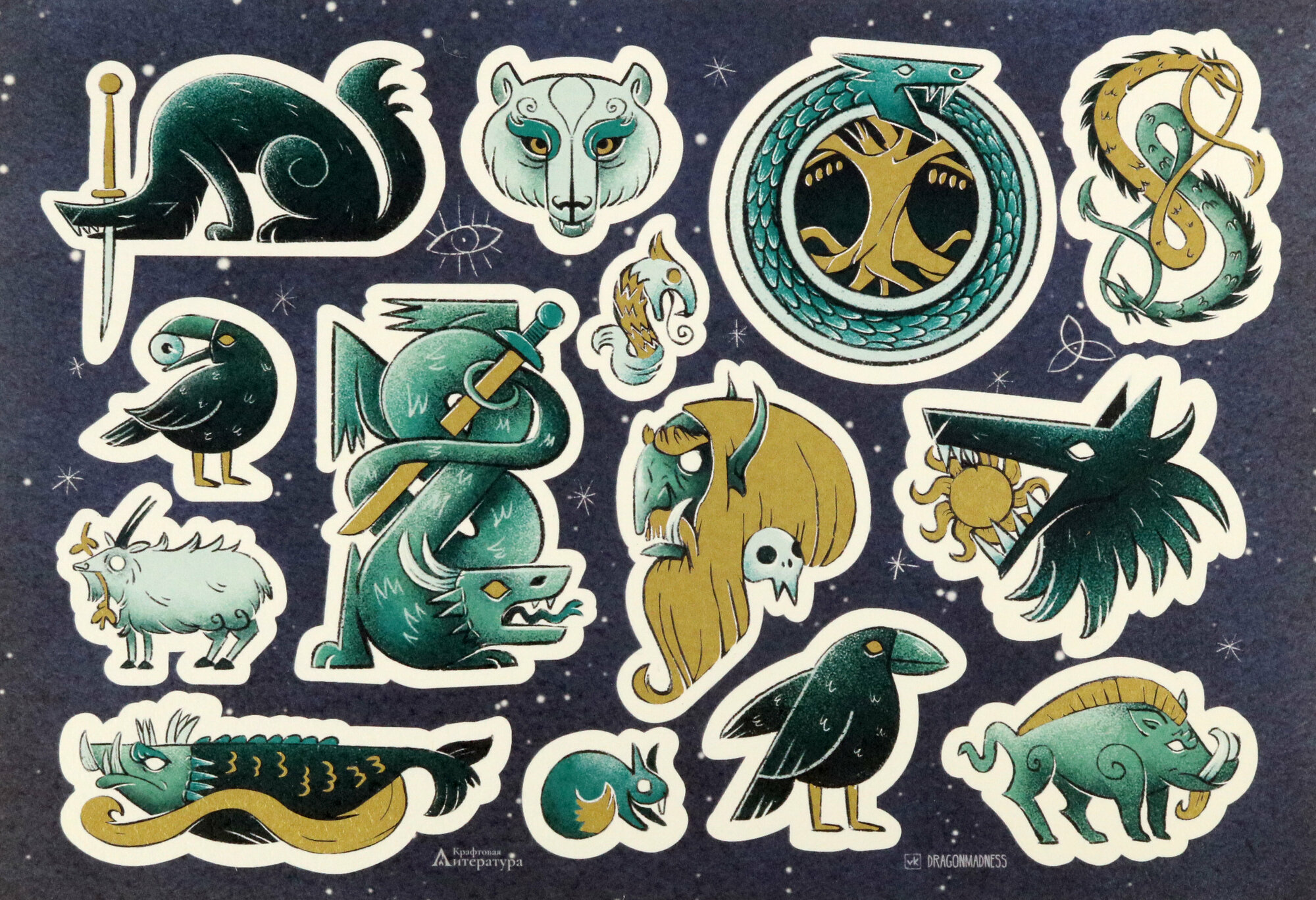 Наклейки Скандинавия с золотом Крафтовая литература