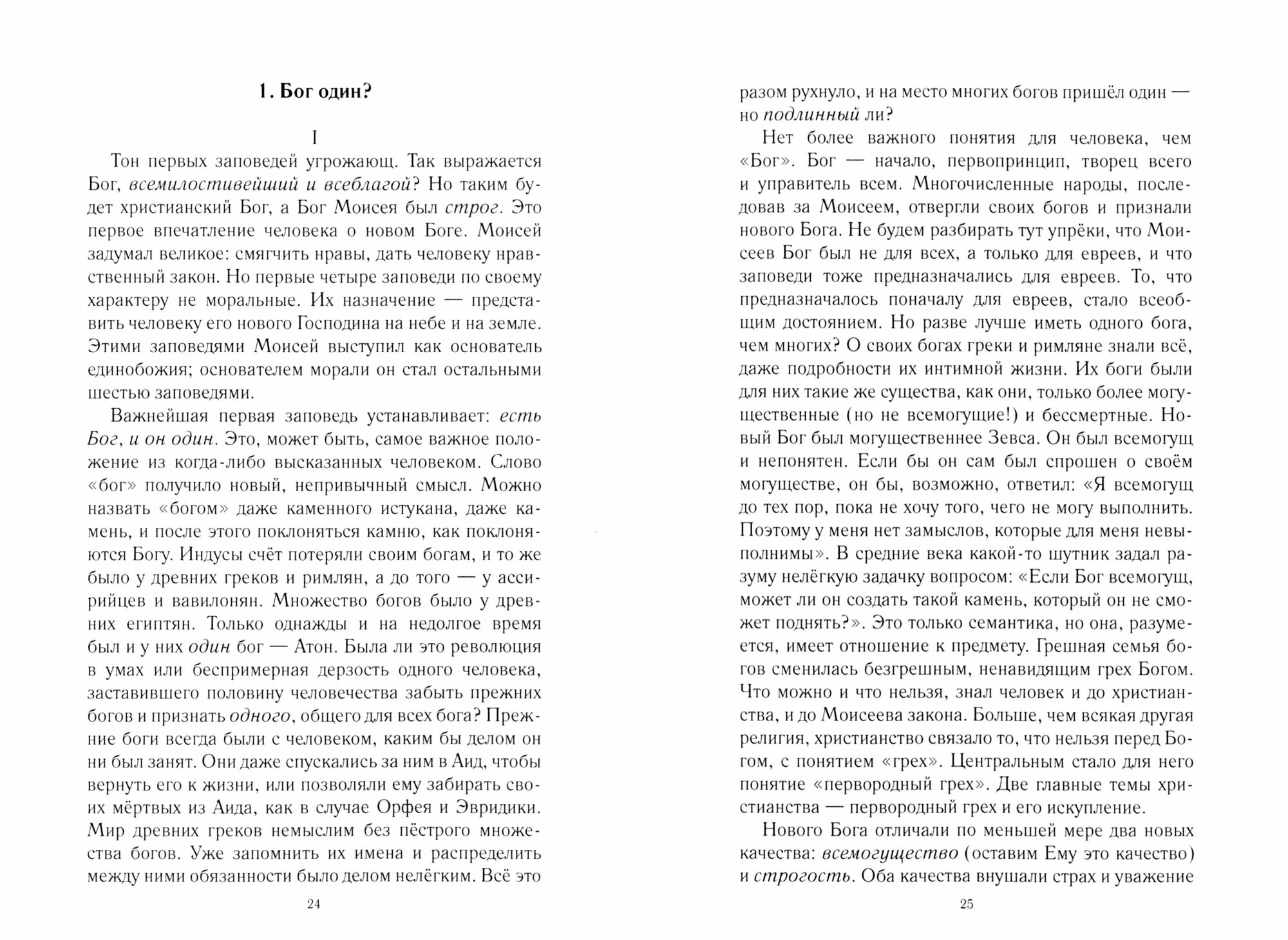 Автор в своей книге поднимает, среди прочего, три вопроса: об авторстве десяти заповедей, об оригинальности и ценности их содержания и об их практическом значении.