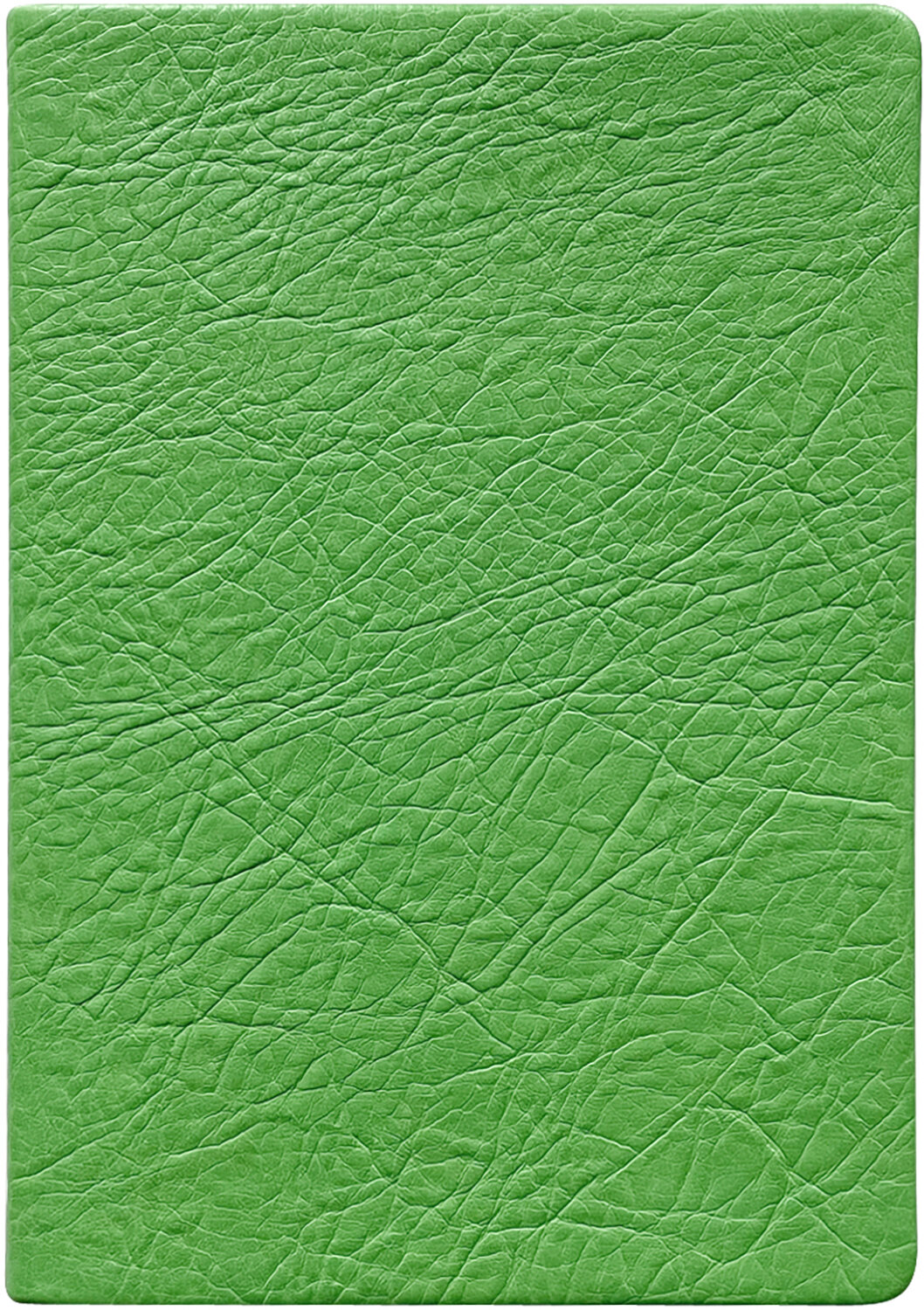 Обложка - интегральная, искусственная кожа с эффектом жатости, цвет - зеленый. Блок недатированный, 192 стр, скругленные уголки, 2 ляссе, информационный блок, бумага: цвет - слоновая кость, 70 г/м2, печать 2+2.