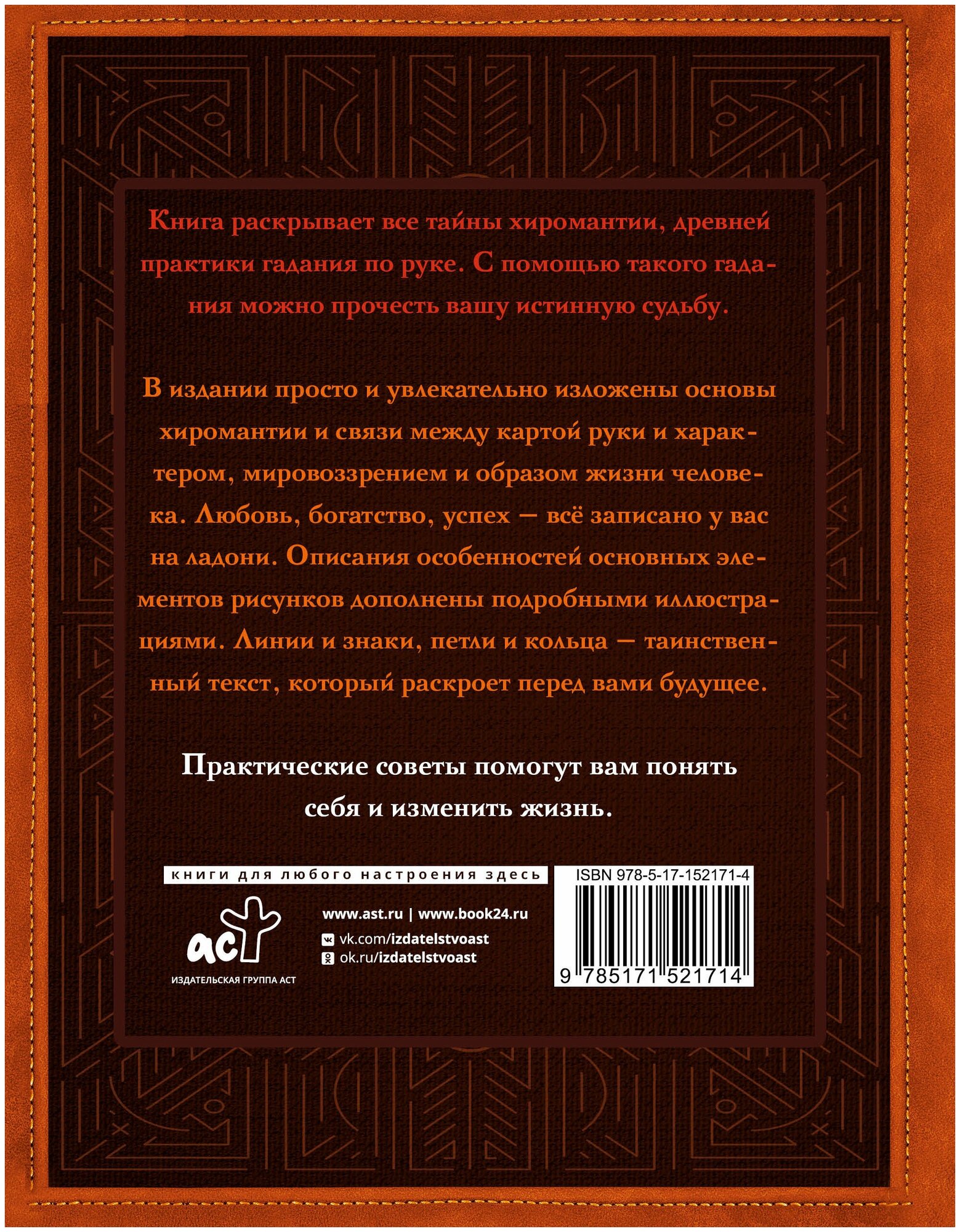 Книга о хиромантии - искусству гадания по руке. С помощью такого гадания можно прочесть вашу истинную судьбу. В издании просто и увлекательно изложены основы хиромантии и связи между картой руки и характером, мировоззрением и образом жизни человека. Любовь, богатство, успех – всё у вас на ладони. Описаны и проиллюстрированы особенности основных элементов ладони. Знаки и линии, кольца и петли – таинственный текст, который раскроет перед вами будущее. Практические советы и подробные иллюстрации помогут вам понять себя и изменить свою жизнь.