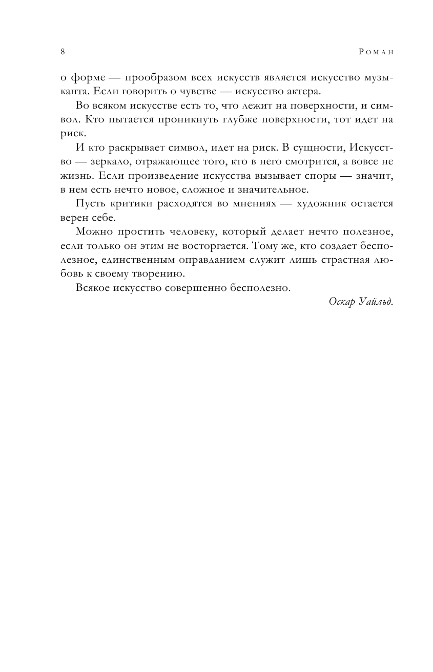 Покупала эту книгу ради Портрета Дориана Грея. Для меня произведение очень тяжёлое оказалось, почему – затрудняюсь объяснить. Роман о том, как фактически душа человека была продана для вечной красоты, бесконечного чревоугодия. Вскрываются абсолютно все грехи и пороки человеческой натуры. Романтизации главного героя у меня не случилось, а вот ощущение, что сама окунулась в грязь, порок и всё самое худшее, что может быть, присутствует.