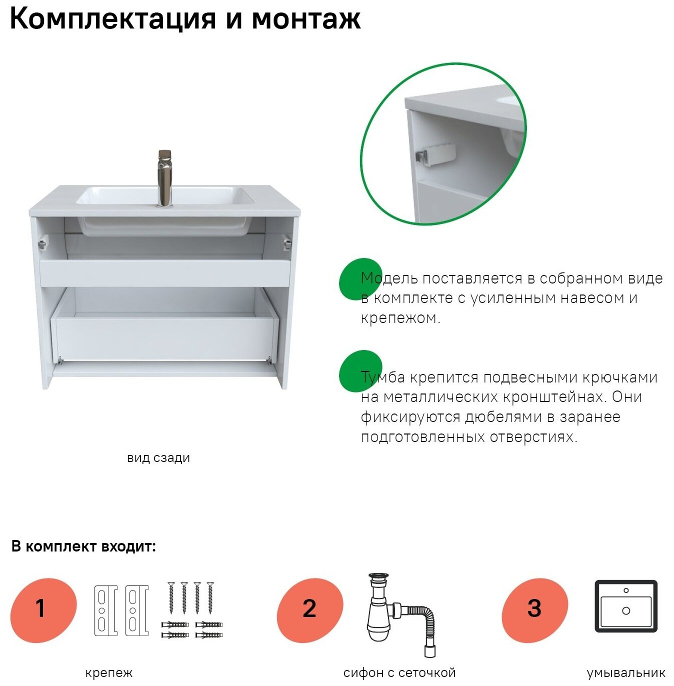- Все пришло без брака и повреждений, сборка простая, качество отличное, и тумба и раковина понравились