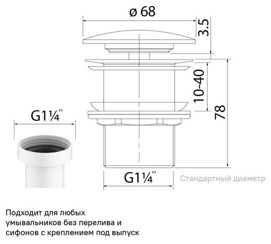 | ВКоробке | Донный клапан - 1 шт. Инструкция - 1 шт. |