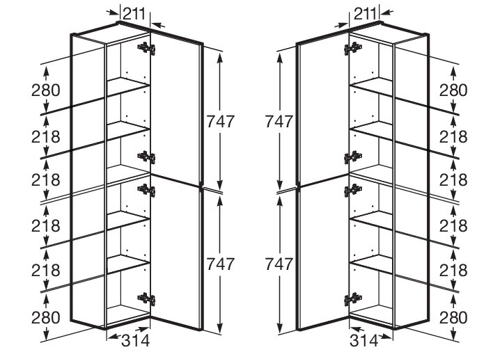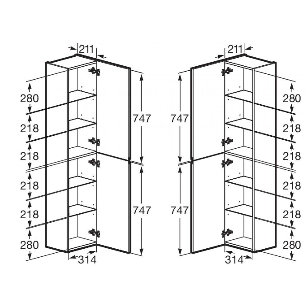 - Размеры корпуса тумбы (ШхВхГ): 350х1500х257 мм.