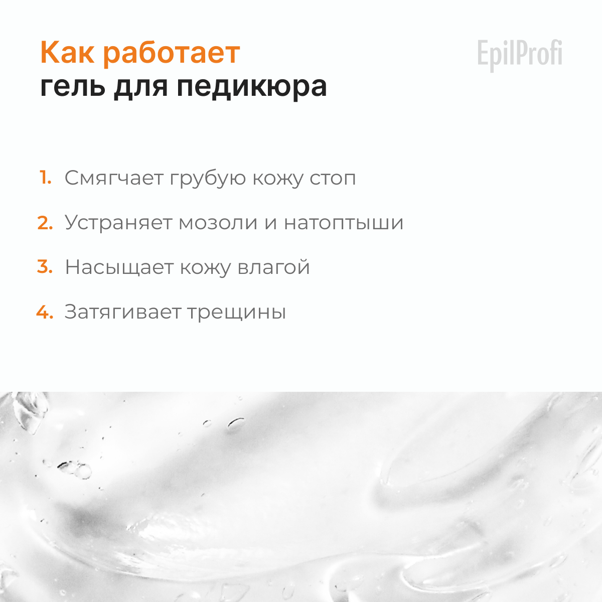 Гель для педикюра EpilProfi помогает легко убрать мозоли и огрубевшие участки, делая кожу стоп гладкой, нежной, мягкой. Размягчитель с соком листа алоэ вера, мочевиной и глицерином, обеспечивает бережный уход за пальцами и пятками. Чистить кожу с его помощью легко.