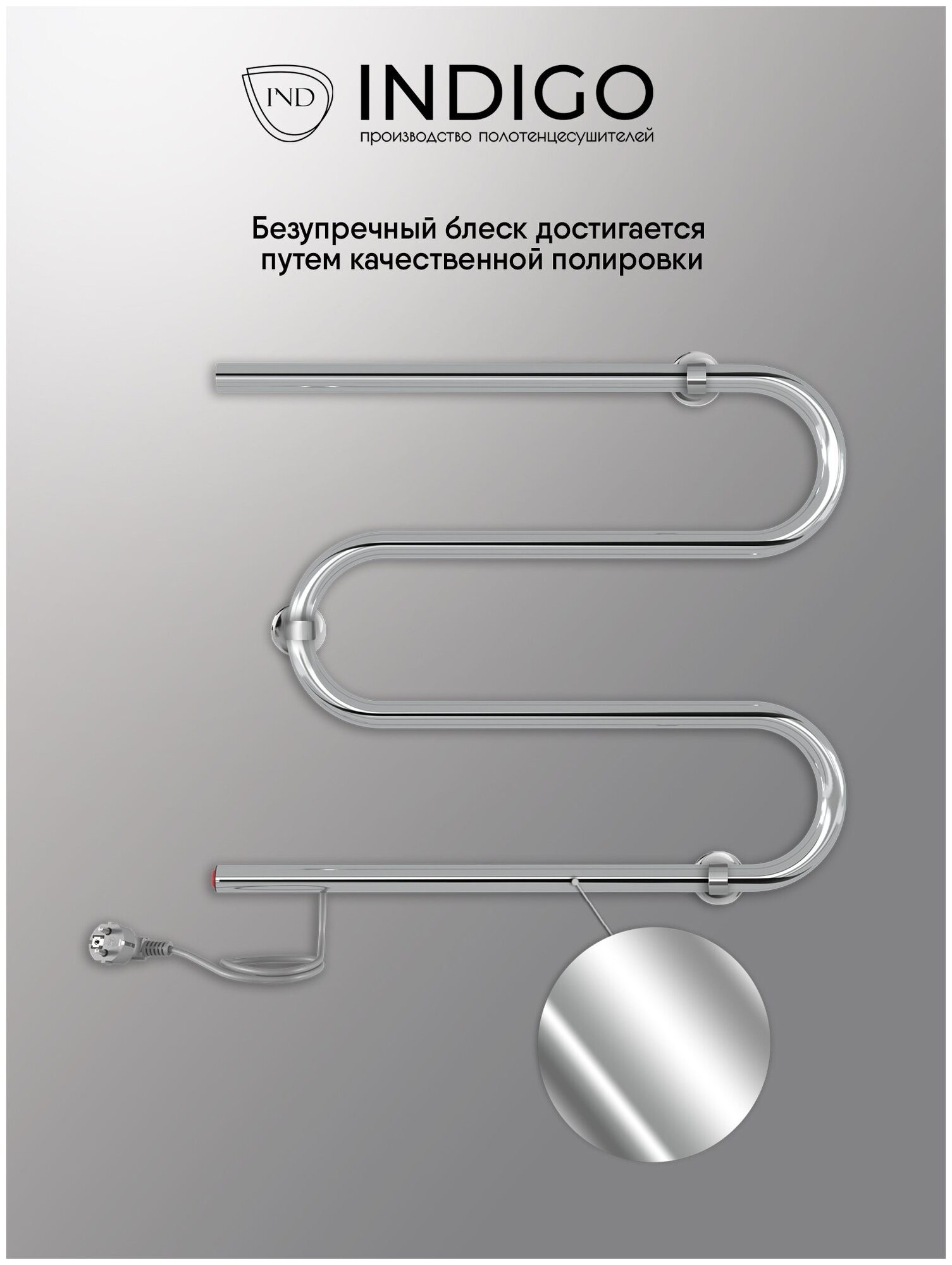 Полотенцесушитель электрический INDIGO M – образный в размере 500х600 (ВхШ) выбирают за его простоту и универсальность. Модель оснащена кнопкой включения на торце полотенцесушителя. Универсальность изделия предусматривает монтаж на правую или левую сторону. Длина прямого провода 1,2 метра. Полотенцесушитель относится к энергоэффективным изделиям, потребляемая мощность в данном размере 40 Вт. Специальная технология нагревательного кабеля защищает полотенцесушитель от перегрева что влияет на длительные сроки службы. В комплектации идут 3 телескопических держателя, комплект для монтажа и гарантийный паспорт.Полотенцесушитель INDIGO M застрахован и имеет гарантию 3 года. Выбирая INDIGO, вы получаете надежный продукт из нержавеющей стали с гарантией качества от Российского производителя.