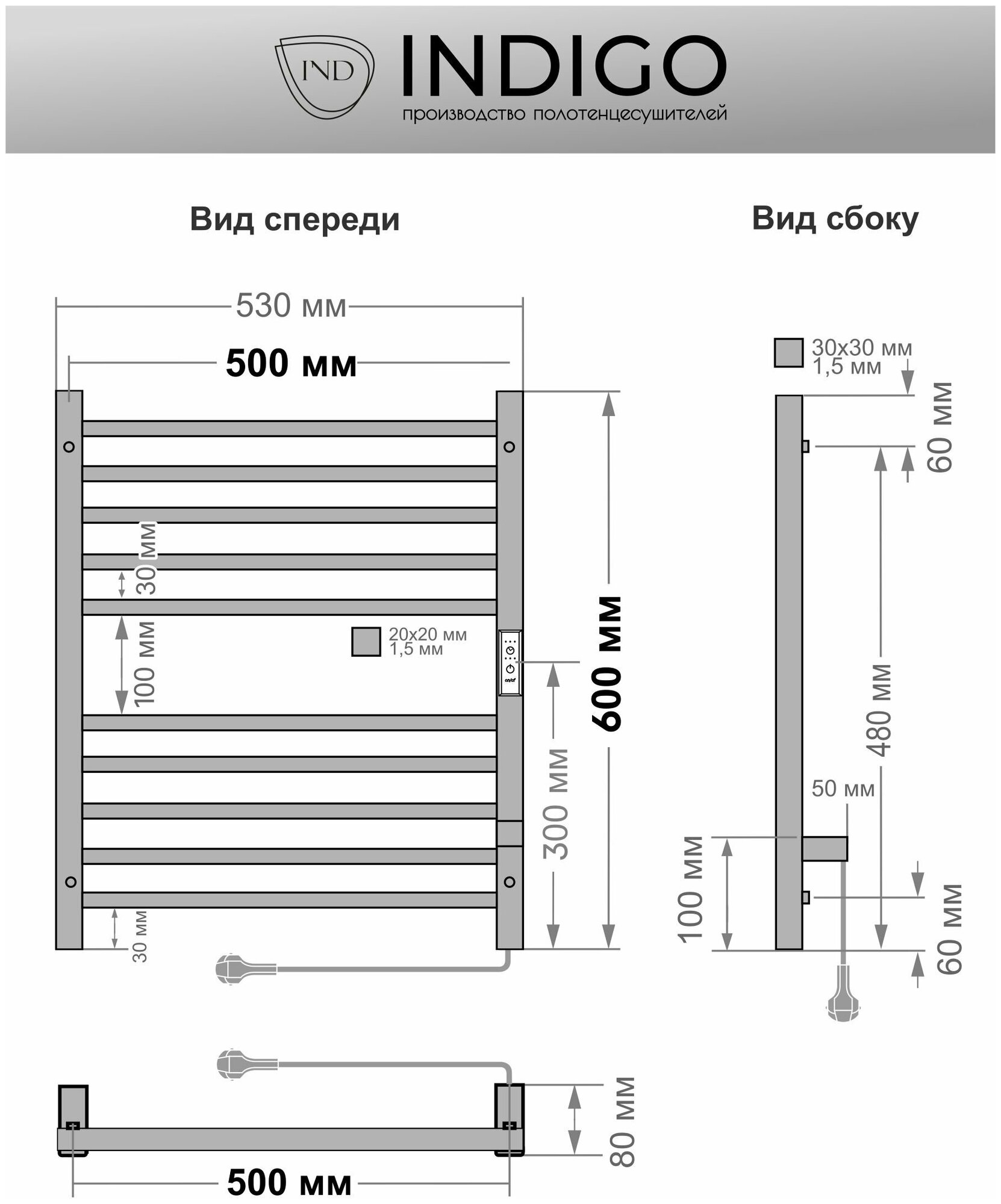 Полотенцесушитель электрический INDIGO Attic в размере 600х500 (ВхШ) выбирают за его технологичность и универсальность. Модель имеет терморегулятор нагрева, у которого три режима: 40, 45, 50 градусов и таймер на отключение через 2, 4, 6 часов. Универсальность изделия предусматривает подключение через провод, который переставляется на нужную вам сторону или скрытое подключение без покупки дополнительного переходника. Длина провода 1,2 метра. Изделие окрашено порошковой краской по специальной технологии. Полотенцесушитель относится к энергоэффективным изделиям, потребляемая мощность в данном размере 80 Вт. Специальная технология нагревательного кабеля защищает полотенцесушитель от перегрева что влияет на длительные сроки службы. В комплектации идут 4 телескопических держателя, комплект монтажа и гарантийный паспорт. Полотенцесушитель INDIGO Attic застрахован и имеет гарантию 3 года. Выбирая INDIGO вы получаете надежный продукт из нержавеющей стали с гарантией качества от Российского производителя