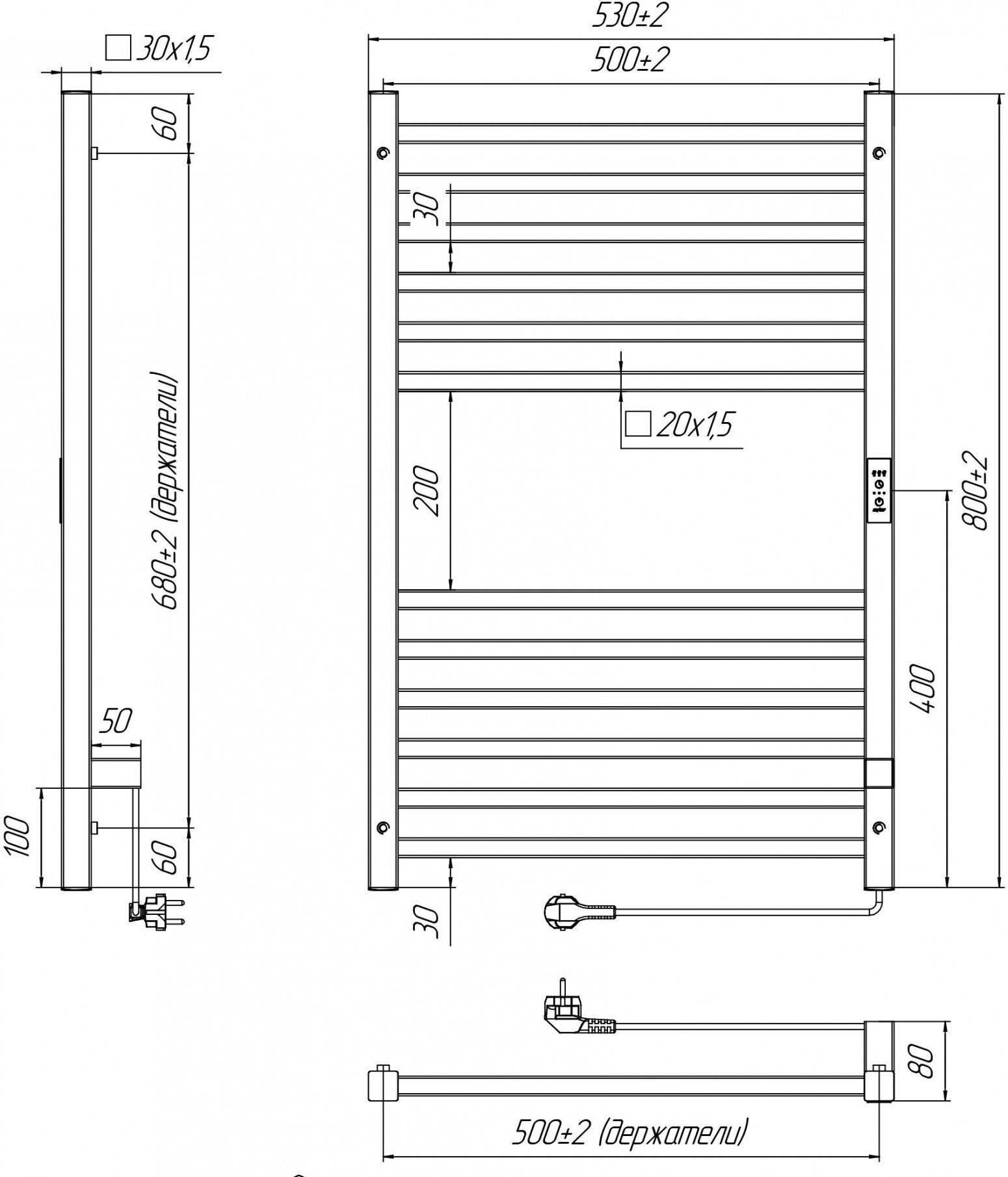 Полотенцесушитель электрический INDIGO Attic в размере 800х500 (ВхШ) выбирают за его технологичность и универсальность. Модель имеет терморегулятор нагрева, у которого три режима: 40, 45, 50 градусов и таймер на отключение через 2, 4, 6 часов. Универсальность изделия предусматривает подключение через провод, который переставляется на нужную вам сторону или скрытое подключение без покупки дополнительного переходника. Длина провода 1,2 метра. Изделие окрашено порошковой краской по специальной технологии. Полотенцесушитель относится к энергоэффективным изделиям, потребляемая мощность в данном размере 90 Вт. Специальная технология нагревательного кабеля защищает полотенцесушитель от перегрева что влияет на длительные сроки службы. В комплектации идут 4 телескопических держателя, комплект монтажа и гарантийный паспорт. Полотенцесушитель INDIGO Attic застрахован и имеет гарантию 3 года. . Выбирая INDIGO вы получаете надежный продукт из нержавеющей стали с гарантией качества от Российского производителя