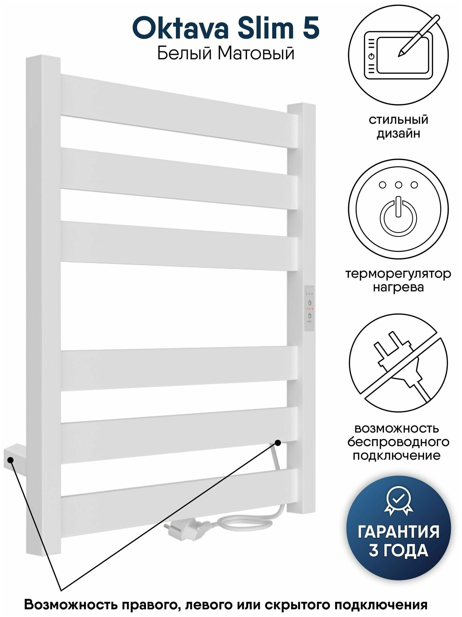 Полотенцесушитель электрический Indigo Oktava Slim 5 белый матовый LСLOKS5E60-50WMRt (размер: 53x60 см)