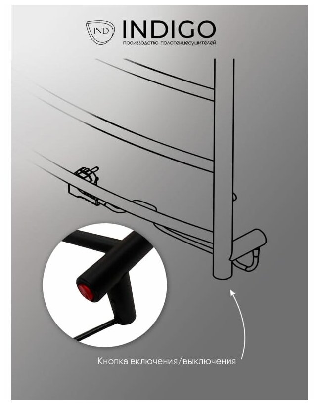 Полотенцесушитель электрический INDIGO Arc с полкой в размере 500х400 (ВхШ) выбирают за его классический вид – лесенки и универсальность. Модель оснащена кнопкой включения на нижней части стойки. Универсальность изделия предусматривает подключение через прямой провод, который переставляется на нужную вам сторону или скрытое подключение без покупки дополнительного переходника. Длина прямого провода 1,2 метра. Изделие имеет полку для большего удобства и комфорта. Полотенцесушитель Arc относится к энергоэффективным изделиям, потребляемая мощность в данном размере 80 Вт. Специальная технология нагревательного кабеля защищает полотенцесушитель от перегрева что влияет на длительные сроки службы. В комплектации идут 4 телескопических держателя, комплект для монтажа и гарантийный паспорт. Полотенцесушитель INDIGO Arc с полкой застрахован и имеет гарантию 3 года. Выбирая INDIGO вы получаете надежный продукт из нержавеющей стали с гарантией качества от Российского производителя.