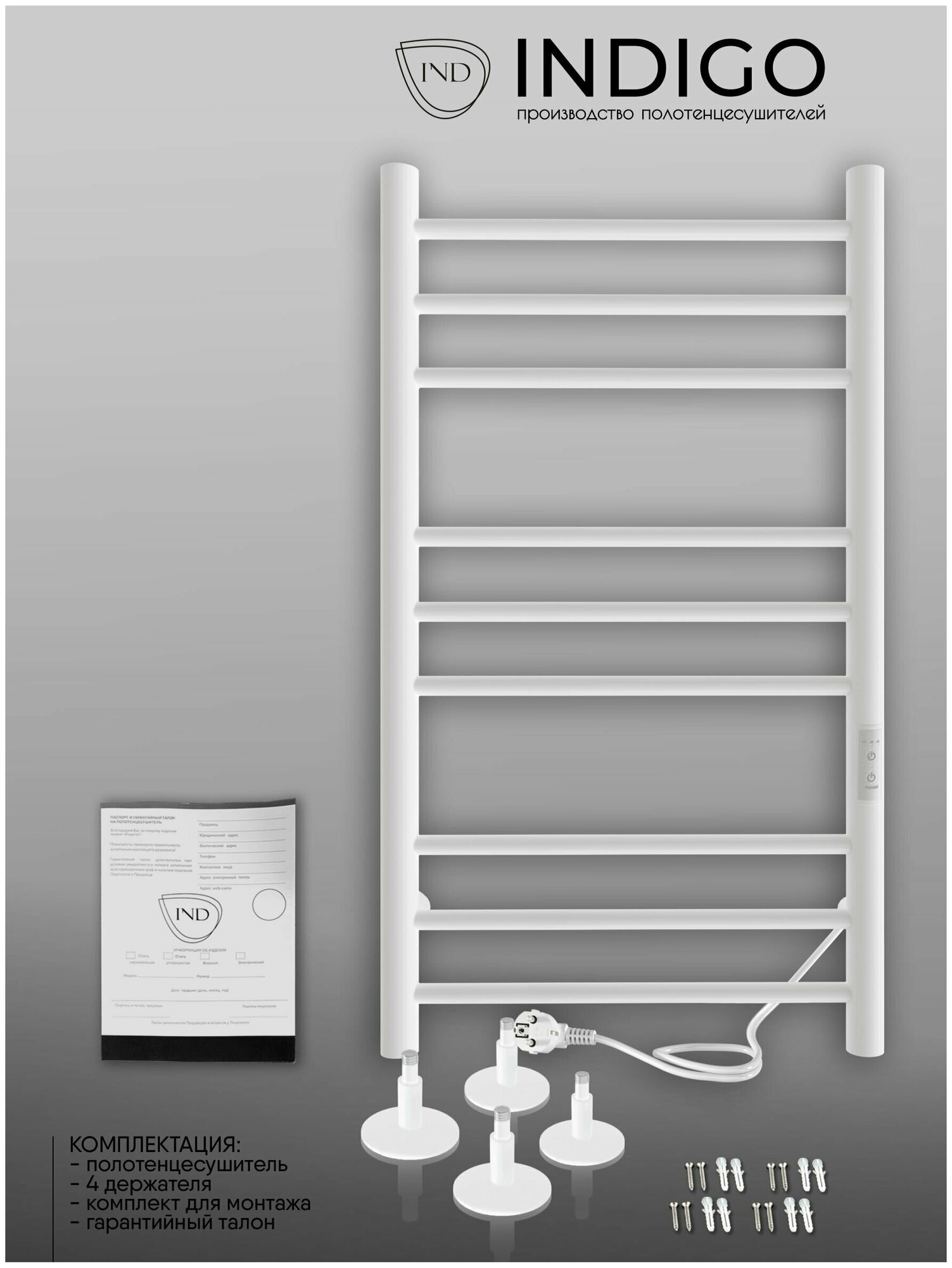 Полотенцесушитель электрический INDIGO Trinity в размере 800х400 (ВхШ) выбирают за его технологичность и универсальность. Модель имеет терморегулятор нагрева, у которого три режима: 40, 45, 50 градусов и таймер на отключение через 2, 4, 6 часов. Универсальность изделия предусматривает подключение через прямой провод, который переставляется на нужную вам сторону или скрытое подключение без покупки дополнительного переходника. Длина прямого провода 1,2 метра. Изделие окрашено порошковой краской по специальной технологии.Полотенцесушитель относится к энергоэффективным изделиям, потребляемая мощность в данном размере 110 Вт. Специальная технология нагревательного кабеля защищает полотенцесушитель от перегрева что влияет на длительные сроки службы. Изделие окрашено порошковой краской по специальной технологии. В комплектации идут 4 телескопических держателя, комплект монтажа и гарантийный паспорт.Полотенцесушитель INDIGO Trinity застрахован и имеет гарантию 3 года. Выбирая INDIGO вы получаете надежный продукт из нержавеющей стали с гарантией качества от Российского производителя