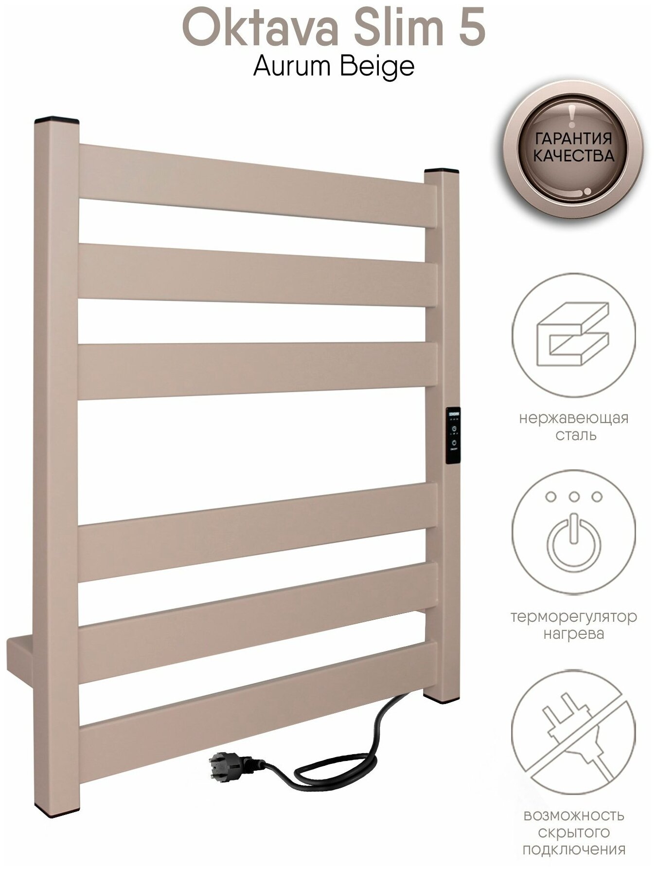 Полотенцесушитель электрический Indigo Oktava Slim 5 бежевый LСLOKS5E60-50ABERt (размер: 53x60 см)