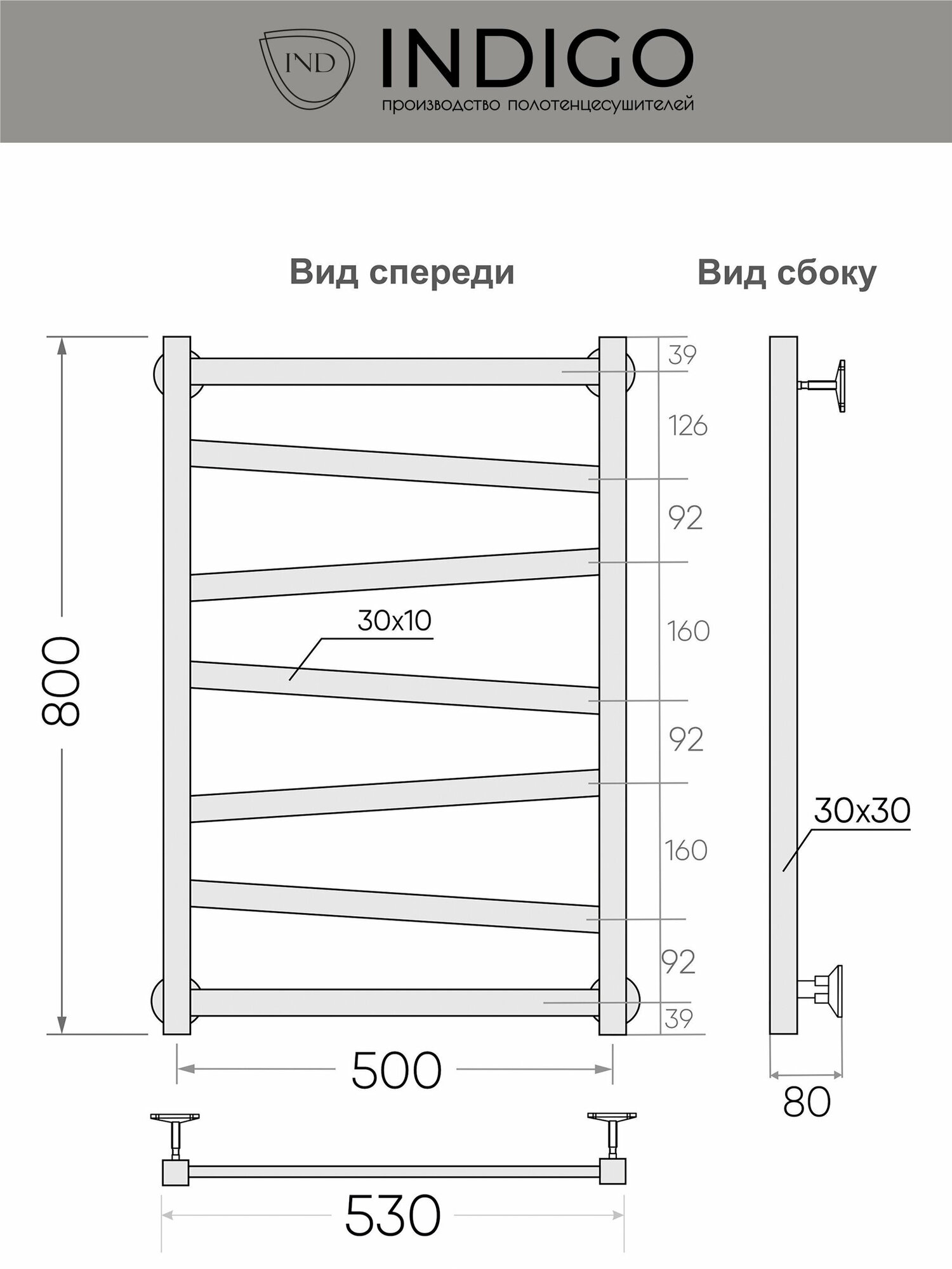 Полотенцесушитель водяной INDIGO Element в размере 800х500 (ВхШ) выбирают за его не симметричную установку перекладин. Модель изготовлена из высококачественной нержавеющей стали. Качественная металлообработка в местах подключений обеспечивает плотное прилегание прокладки. Изделие окрашено порошковой краской по специальной технологии. В комплектацию входит изделие, гарантийный талон, держатель 2 шт., отражатель декоративный 2шт.. У модели предусмотрено подключение через специальные отводы с накидной гайкой - докупать фитинги не требуется.