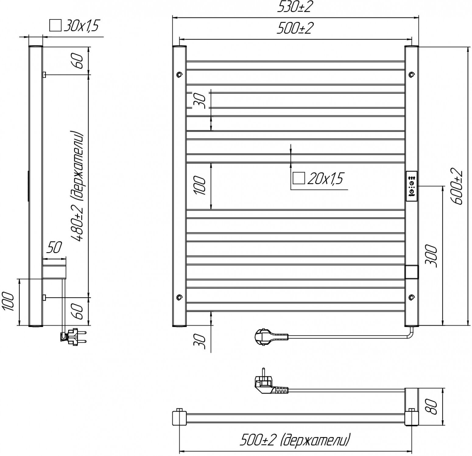 | ВКоробке | Полотенцесушитель - 1 шт. Терморегулятор - 1 шт. Комплект креплений - 1 шт. Комплект декоративных заглушек - 1 шт. Электрический кабель - 1 шт. Инструкция - 1 шт. |
