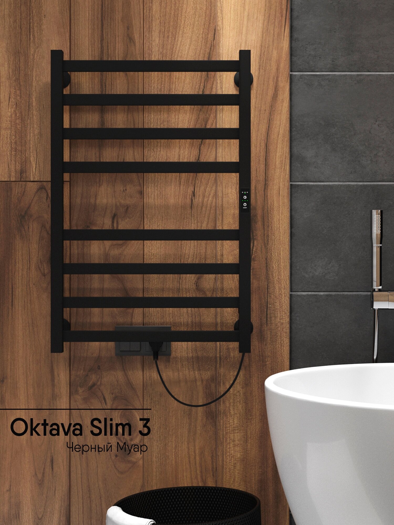 Полотенцесушитель электрический Indigo Oktava Slim 3 черный муар LСLOKS3E80-50BRRt (размер: 53x80 см)