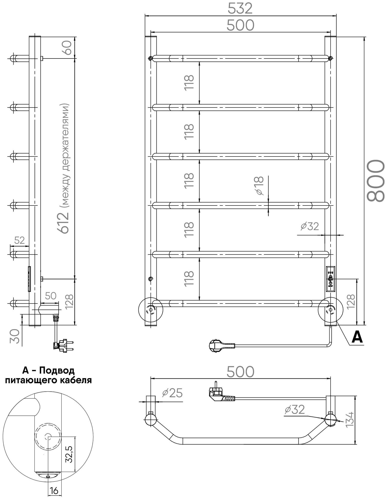 | ВКоробке | Полотенцесушитель - 1 шт. Терморегулятор - 1 шт. Комплект креплений - 1 шт. Комплект декоративных заглушек - 1 шт. Электрический кабель - 1 шт. Инструкция - 1 шт. |