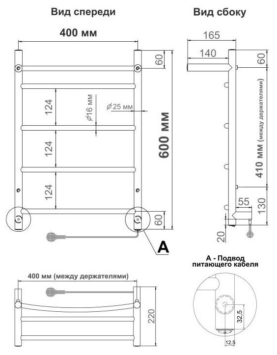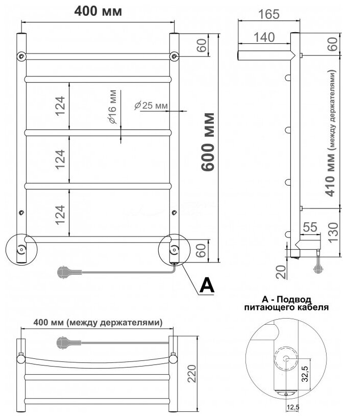 | ВКоробке | Полотенцесушитель - 1 шт. Комплект креплений - 1 шт. Комплект декоративных заглушек - 1 шт. Электрический кабель - 1 шт. Инструкция - 1 шт. |