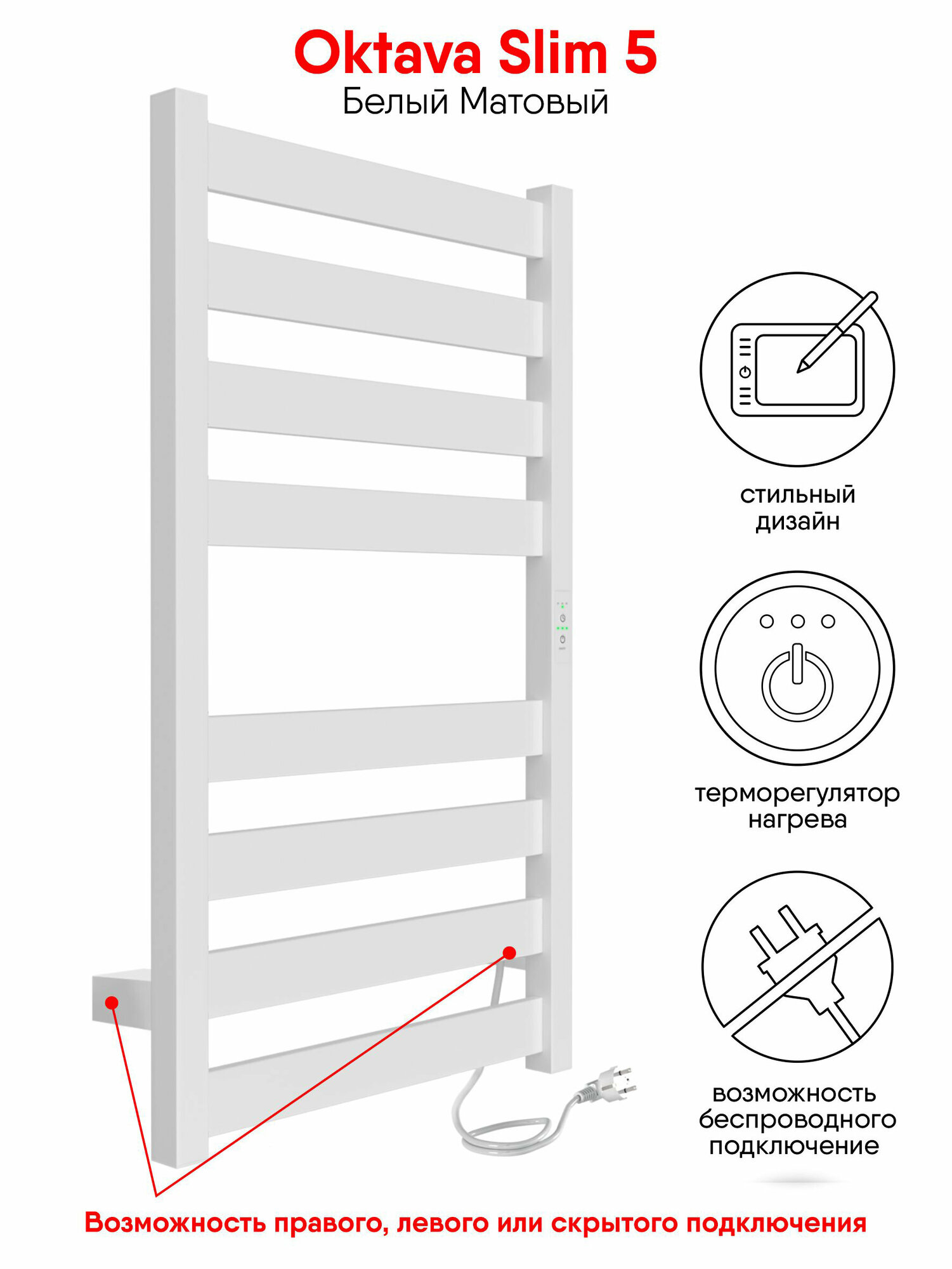 Полотенцесушитель электрический Indigo Oktava Slim 5 белый матовый LСLOKS5E80-40WMRt (размер: 43X80 см)