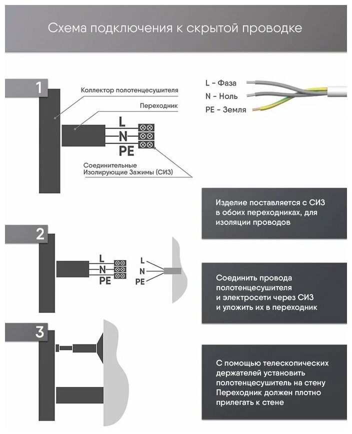 | Подключение | скрытое электрическое соединение, электропровод с вилкой |