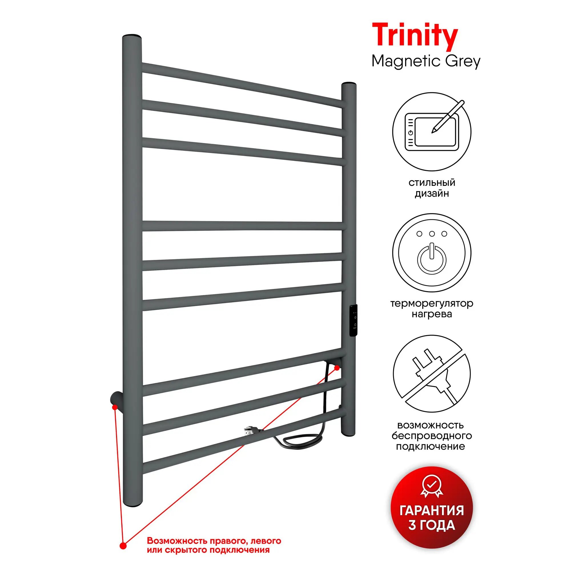 Полотенцесушитель электрический Indigo Line Trinity серый LСLTE80-50MGRt (размер: 53X80 см)