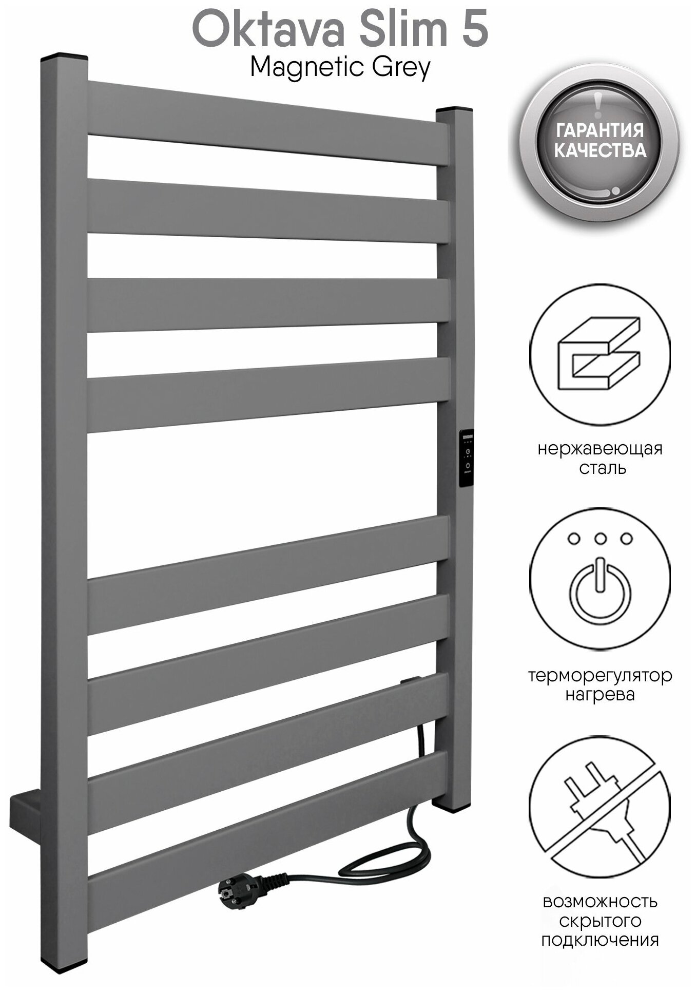 Полотенцесушитель электрический Indigo Oktava Slim 5 серый LСLOKS5E80-50MGRt (размер: 53x80 см)