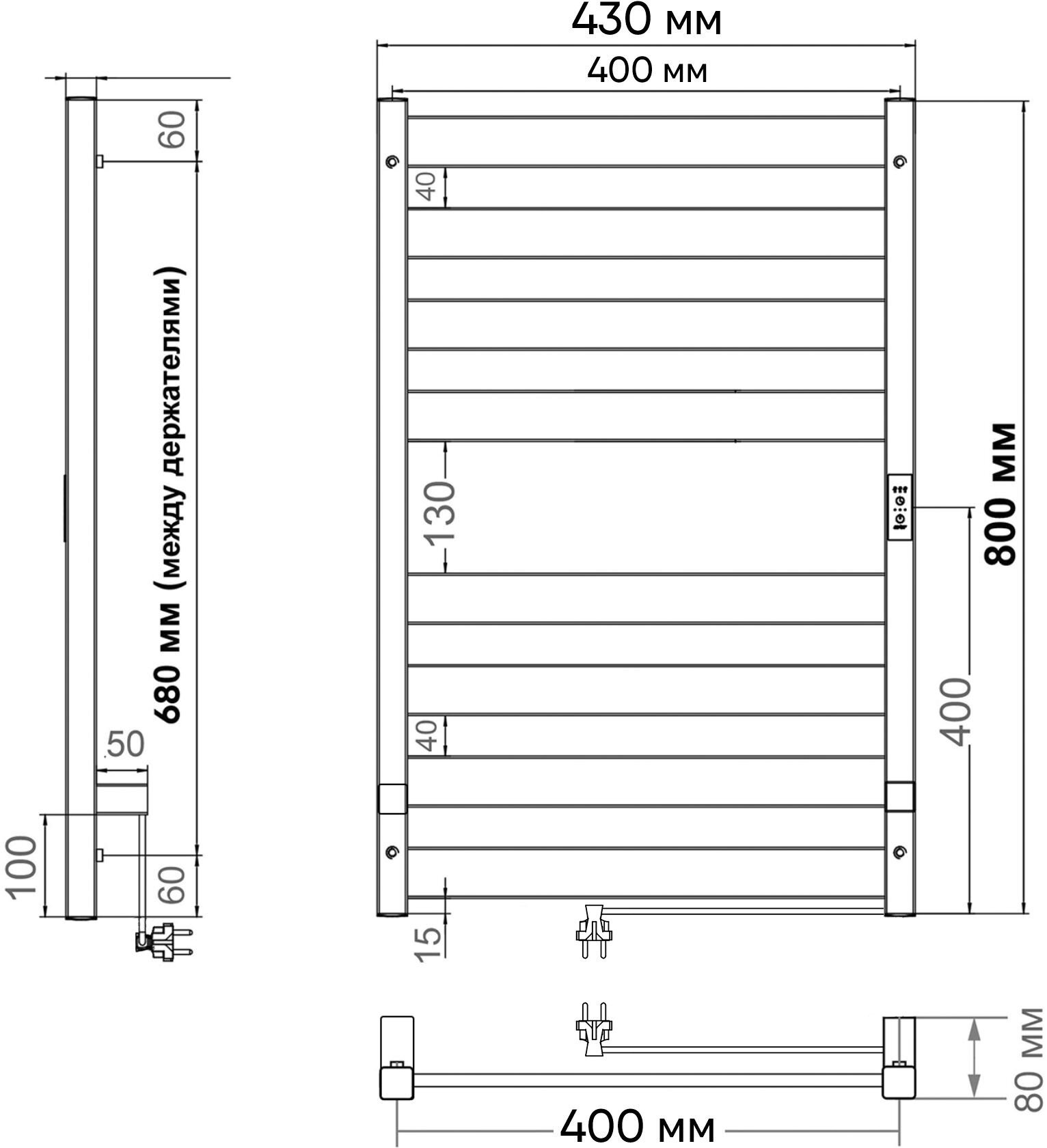 | ВКоробке | Полотенцесушитель - 1 шт. Терморегулятор - 1 шт. Комплект креплений - 1 шт. Комплект декоративных заглушек - 1 шт. Электрический кабель - 1 шт. Инструкция - 1 шт. |