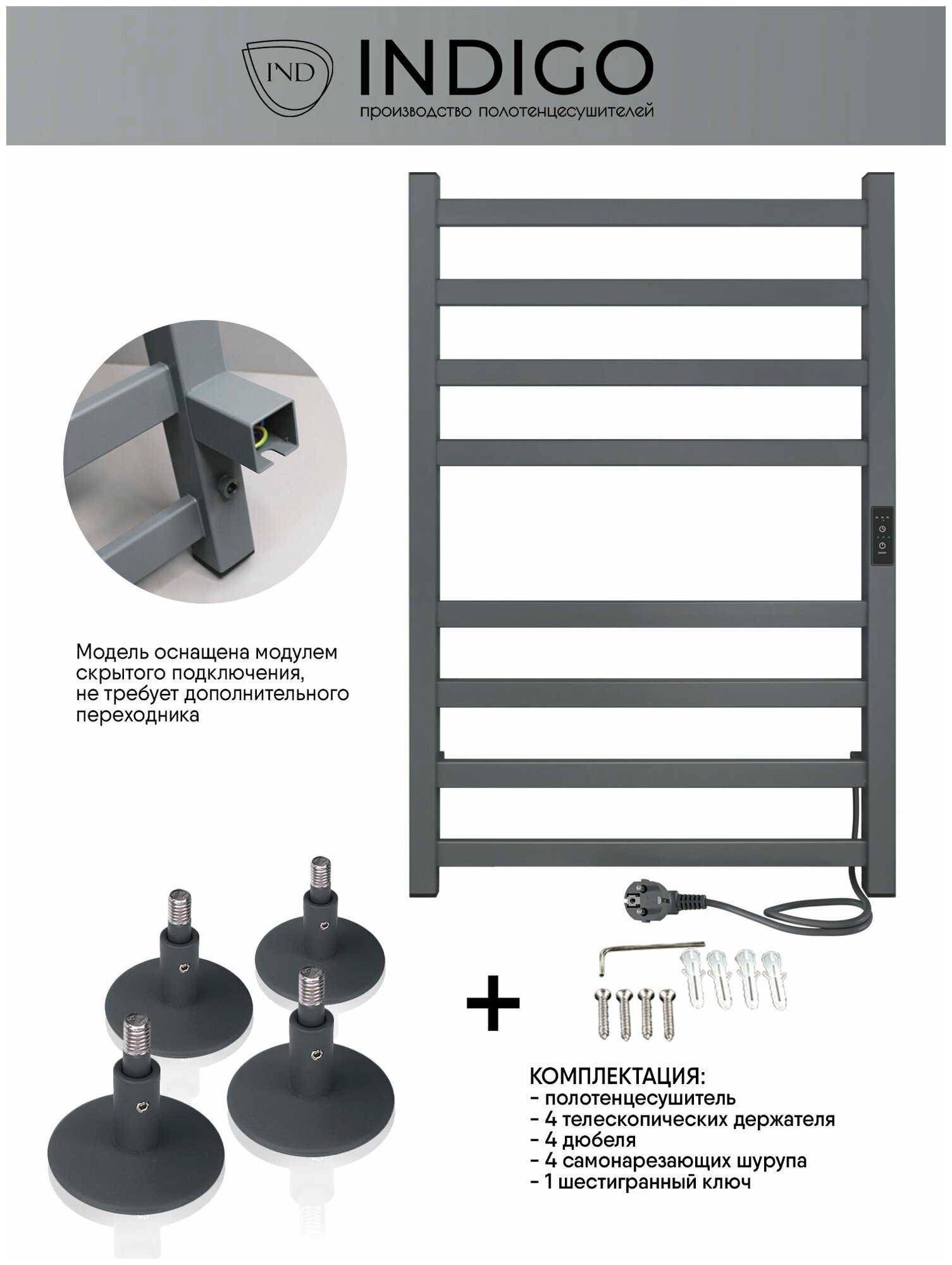 Сервис сравнения цен СкидкаГИД предлагает сравнить цены на товар «Полотенцесушитель электрический Indigo Oktava Slim 3 серый LСLOKS3E80-50MGRt (размер: 53x80 см)»