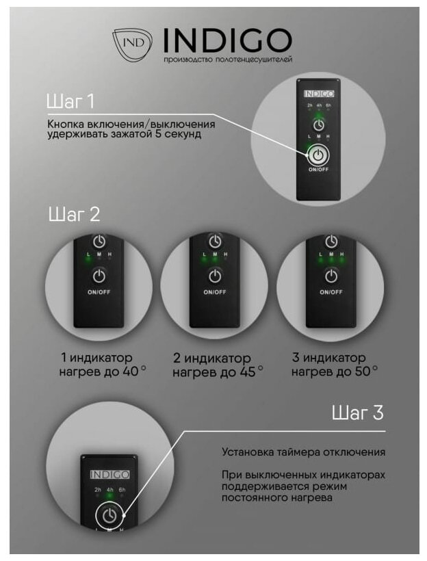 Полотенцесушитель электрический INDIGO Oktava Slim 3 в размере 800х500 (ВхШ) выбирают за его технологичность и универсальность. Модель имеет терморегулятор нагрева, у которого три режима: 40, 45, 50 градусов и таймер на отключение через 2, 4, 6 часов. Универсальность изделия предусматривает подключение через провод, который переставляется на нужную вам сторону или скрытое подключение без покупки дополнительного переходника. Длина провода 1,2 метра. Изделие окрашено порошковой краской по специальной технологии. Полотенцесушитель относится к энергоэффективным изделиям, потребляемая мощность в данном размере 90 Вт. Специальная технология нагревательного кабеля защищает полотенцесушитель от перегрева что влияет на длительные сроки службы. В комплектации идут 4 телескопических держателя, комплект монтажа и гарантийный паспорт. Полотенцесушитель INDIGO Oktava Slim 3 застрахован и имеет гарантию 3 года. Выбирая INDIGO вы получаете надежный продукт из нержавеющей стали с гарантией качества от Российского производителя
