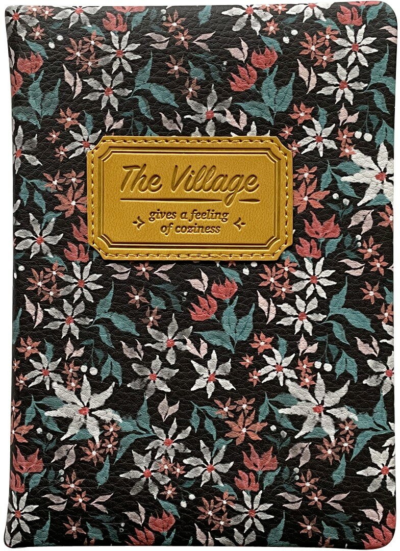 Обложка - твердая с поролоном, матовая искусственная кожа с крупной фактурой и принтом "Белые цветы". Блок полудатированный, 320 стр, скругленные уголки, 2 ляссе, информационный блок, бумага: цвет - слоновая кость, 70 г/м2, печать 2+2. Особенности: нашивка с блинтовым тиснением и прострочкой.