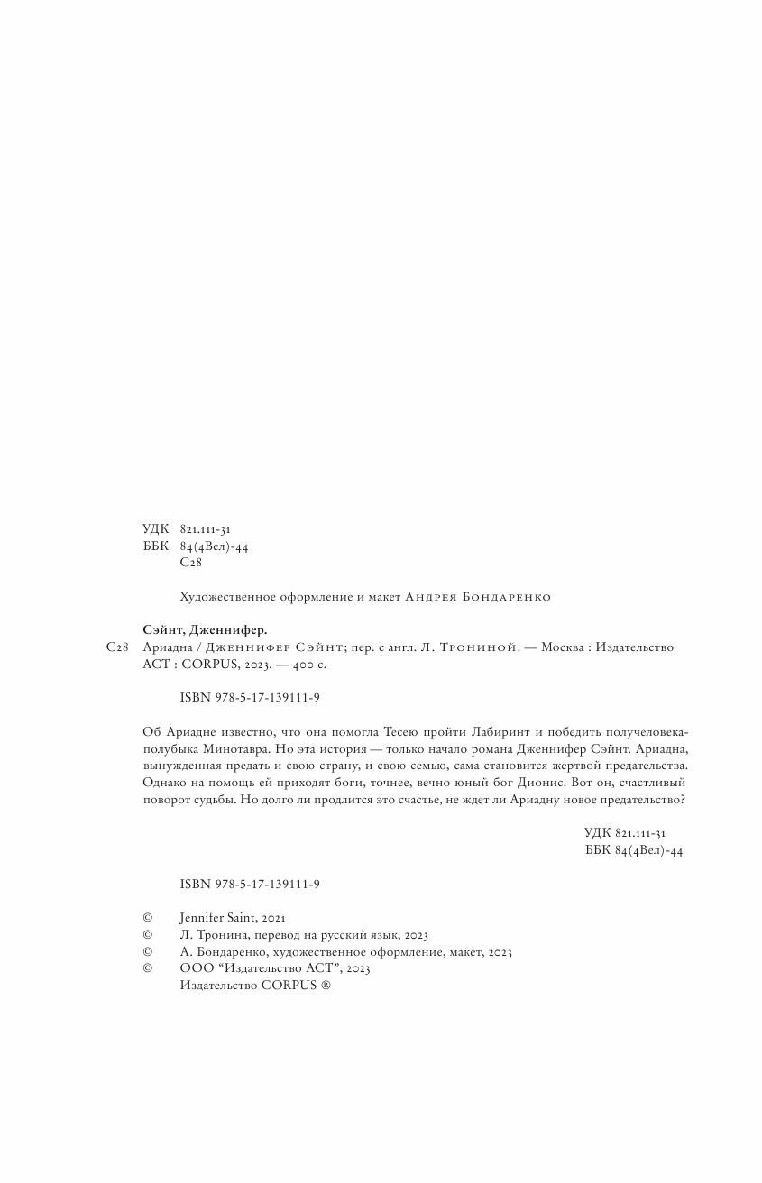 Книга: Ариадна (Дженнифер Сэйнт); Издательство АСТ, 2021