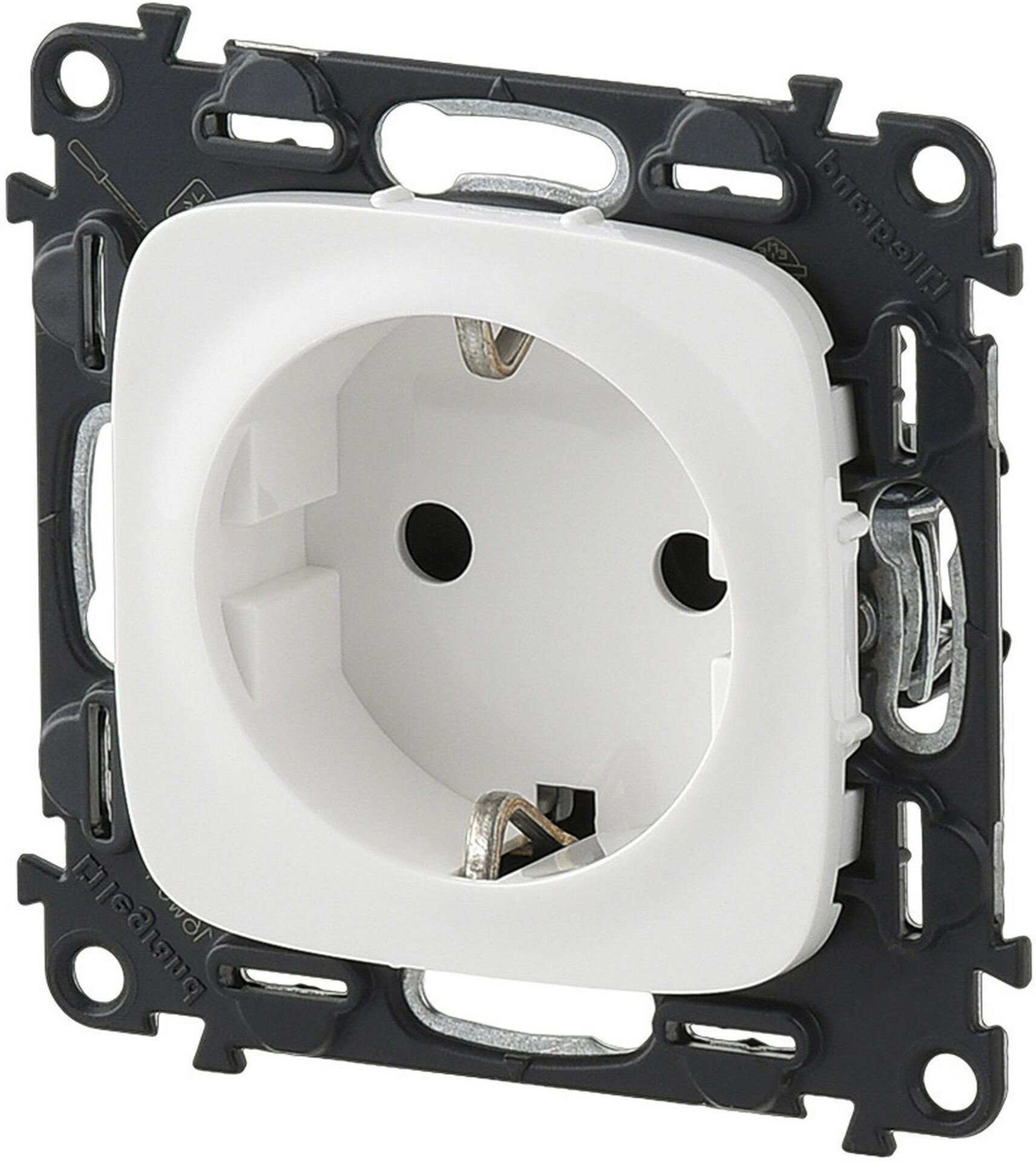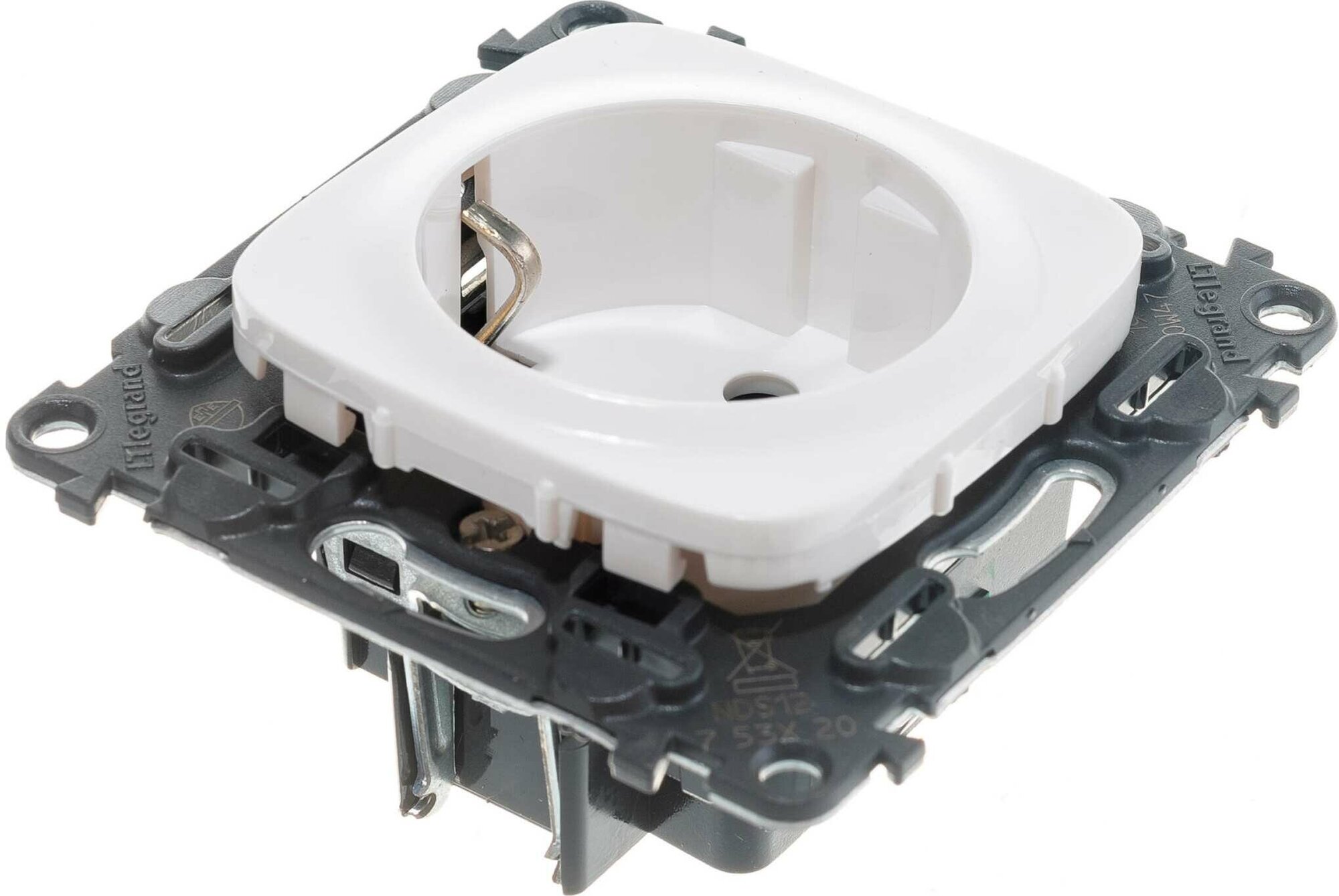 **Розетка Legrand VLN-A** оснащена 2 контактами с заземлением. Благодаря особой конструкции внутрь не попадают влага, пыль и загрязнения. Модель предназначена для подключения электроприборов к сети переменного тока.
