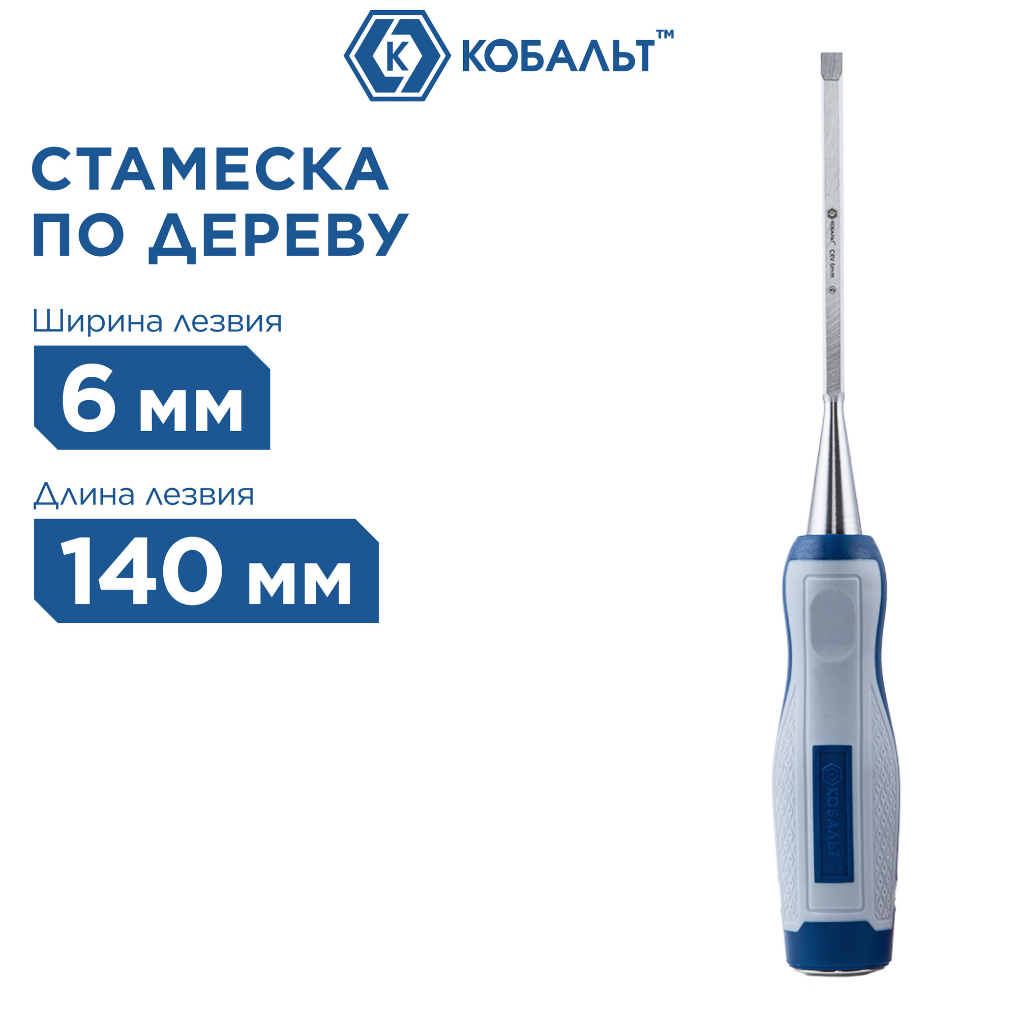 Стамеска КОБАЛЬТ 6мм служит для выдалбливания отверстий, пазов и фасок при обработке деревянных заготовок. Не проскальзывает в руке благодаря сочетанию двух материалов при изготовлении накладки на ручку.