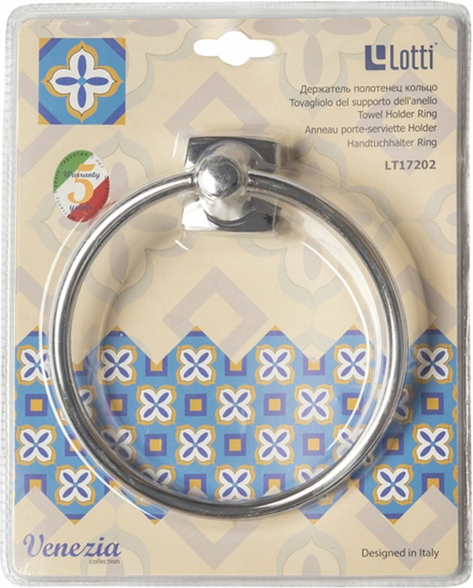 Ищете стильные и элегантные аксессуары для ванной? Изысканный держатель для полотенец Venezia - сдержанный представитель стиля. Хромированное кольцо прослужит долго и ярко, благодаря антикоррозийным свойствам. Полотенцедержатель для полотенец выполнен из качественного сплава металла. Кольцо - не единственная форма держателя в серии Venezia - вы также можете открыть для себя весь набор ванных аксессуаров: держатель штангу, рога, или вовсе дполнить свой интерьер мыльницей, стаканом для зубных щеток или изящным нажимным дозатором жидкого мыла!