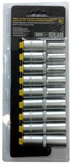 Набор удлиненных торцевых головок Berger BG применяется для монтажа/демонтажа различных деталей при ремонте и обслуживании разнообразного оборудования, техники и автомобильного транспорта. Головки удлиненной конструкции особенно полезны при необходимости выполнения крепежных работ в труднодоступных посадочных местах. Насадки полностью выполнены из высококачественного материала, обладают повышенным рабочим ресурсом.